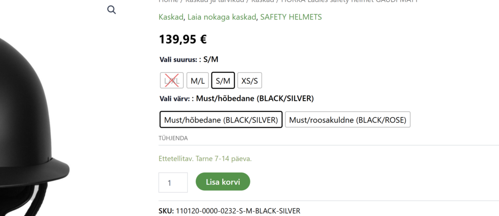 Ava huvipakkuv toode ja vali soovitud vƤrv ja suurus – kui toode on kohe saadaval, kuvatakse roheliselt teade:
