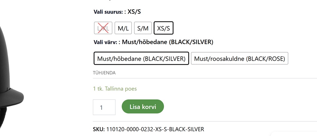 Ava huvipakkuv toode ja vali soovitud vƤrv ja suurus – kui toode on kohe saadaval, kuvatakse roheliselt teade: