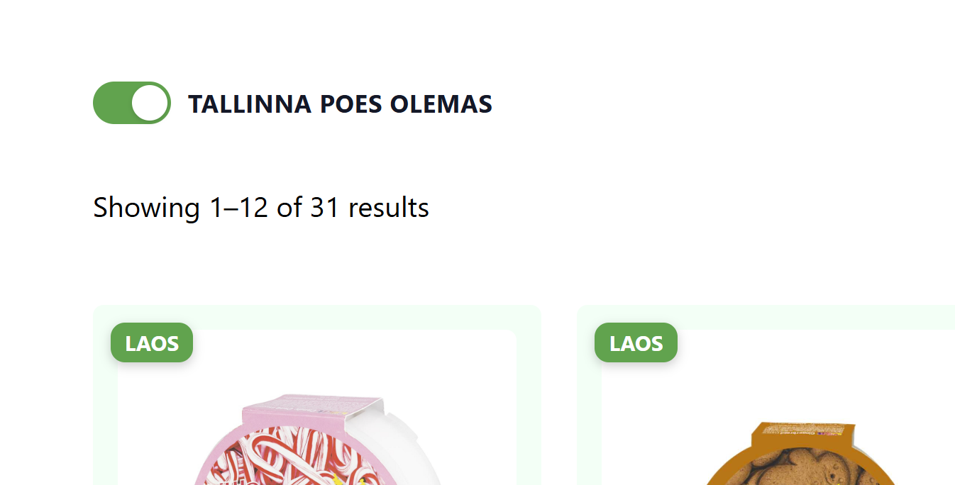 Filtreeri tootekategoorias nupust Tallinna poes olevad tooted: