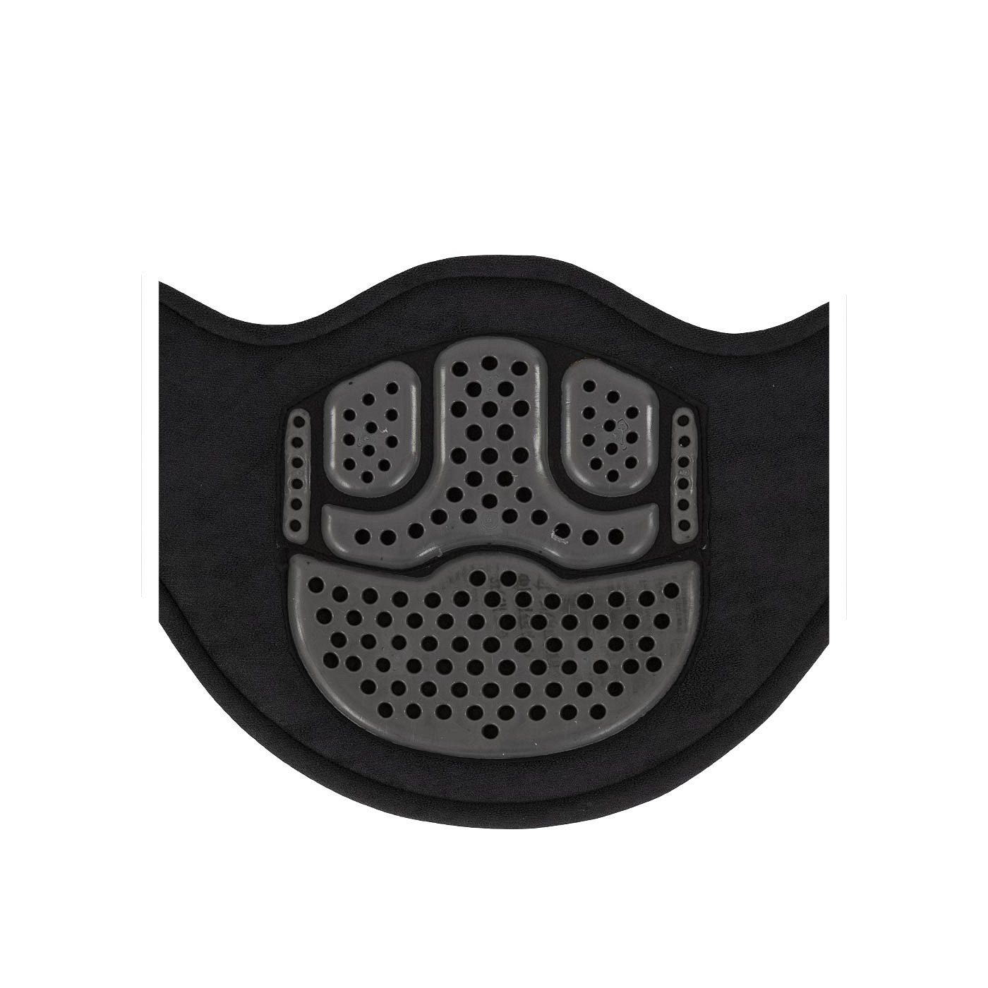 Short, synthetic, anatomically shaped girth with comfort gel, which allows for better breathing and increased freedom of movement. The airflow gel padding covers a large area of the horses belly without pinching. The special design relieves pressure on the organs and prevents excessive heat accumulation. The stud guard is 50 cm wide and provides optimum belly protection when jumping. The girth features elastic inserts at both ends and a centre D-ring and patented safety hook for the possible attachment of draw reins. This hook has been designed to eliminate the need for additional snap hooks or straps and buckle elements. In this way, the risk of entanglement and falling of the horse when jumping, is prevented. The girth has stainless steel roller buckles with a rubber band. As a result, the prong will quickly find the punch hole of the billet, which makes girthing easier. The girth loops ensure that the girth stays perfectly in place.