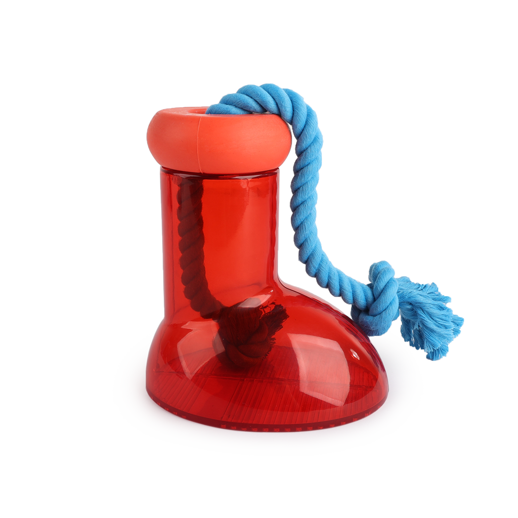 This food or snack dispenser will keep dogs occupied for hours! Twist off the top of the boot, put some kibble or snacks in the boot and twist the top back on. The dog has to try hard to get the treats out of the opening at the top along the rope. Thanks to the rope, the dog can easily grab the boot and move it around. Ideal when the dog is bored, needs to be home alone or as a reward.