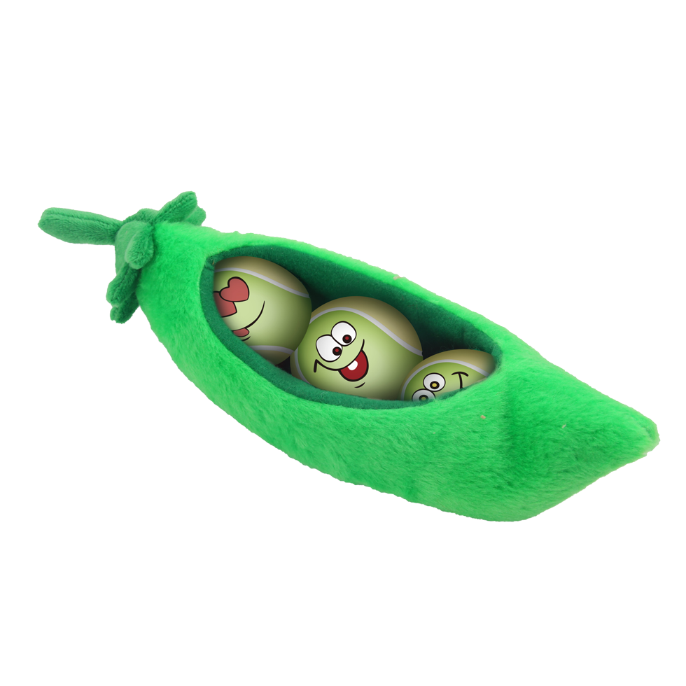 This ball set is packed in a pee pod and produces crackling sounds during play.