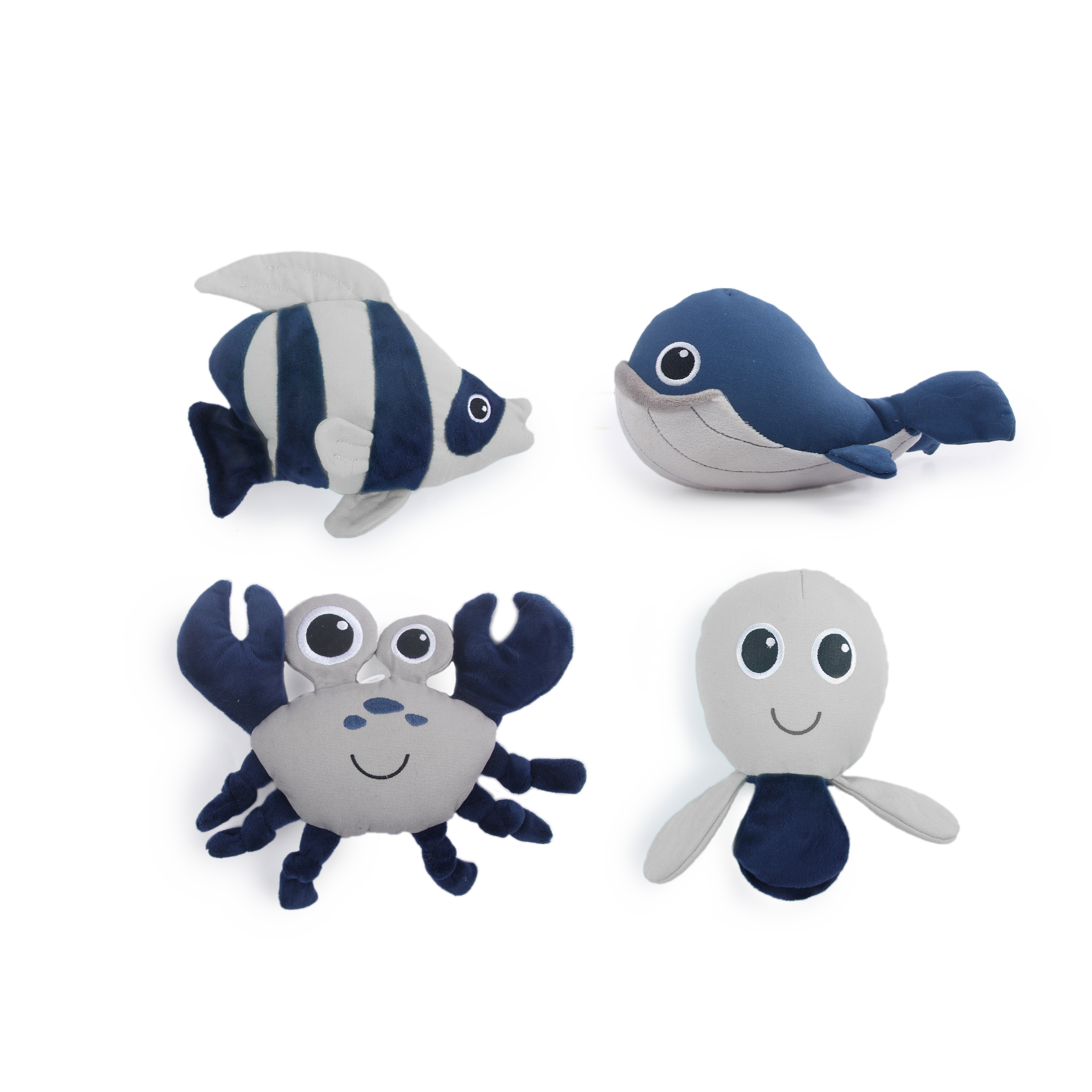 Displays filled with cute or funny soft toys and cuddly toys. The toys are made of soft materials and feature a squeaker and/or crackle for extra fun!