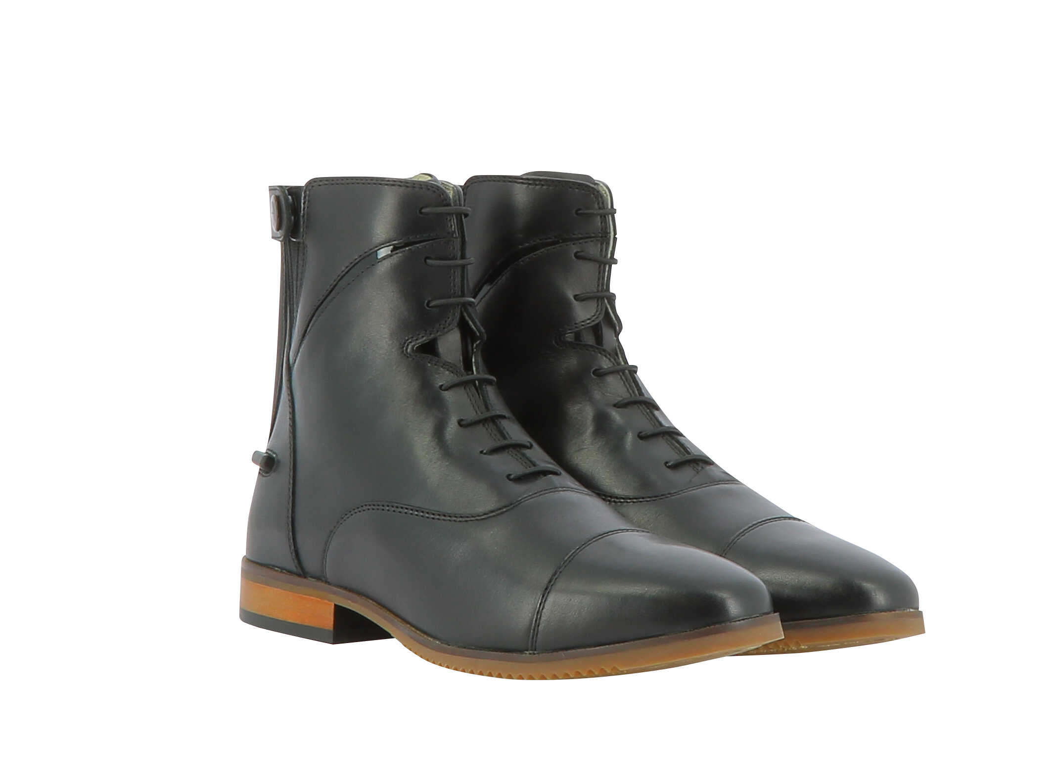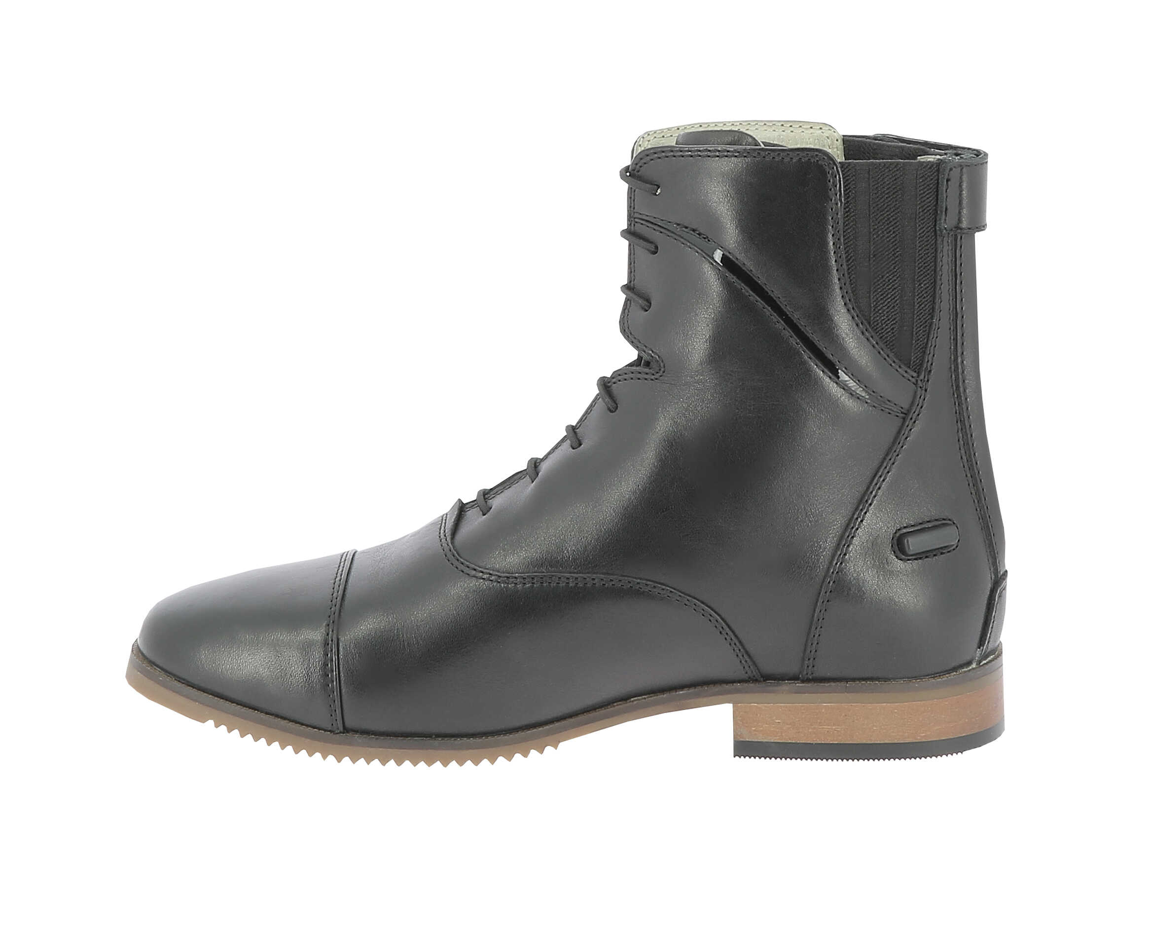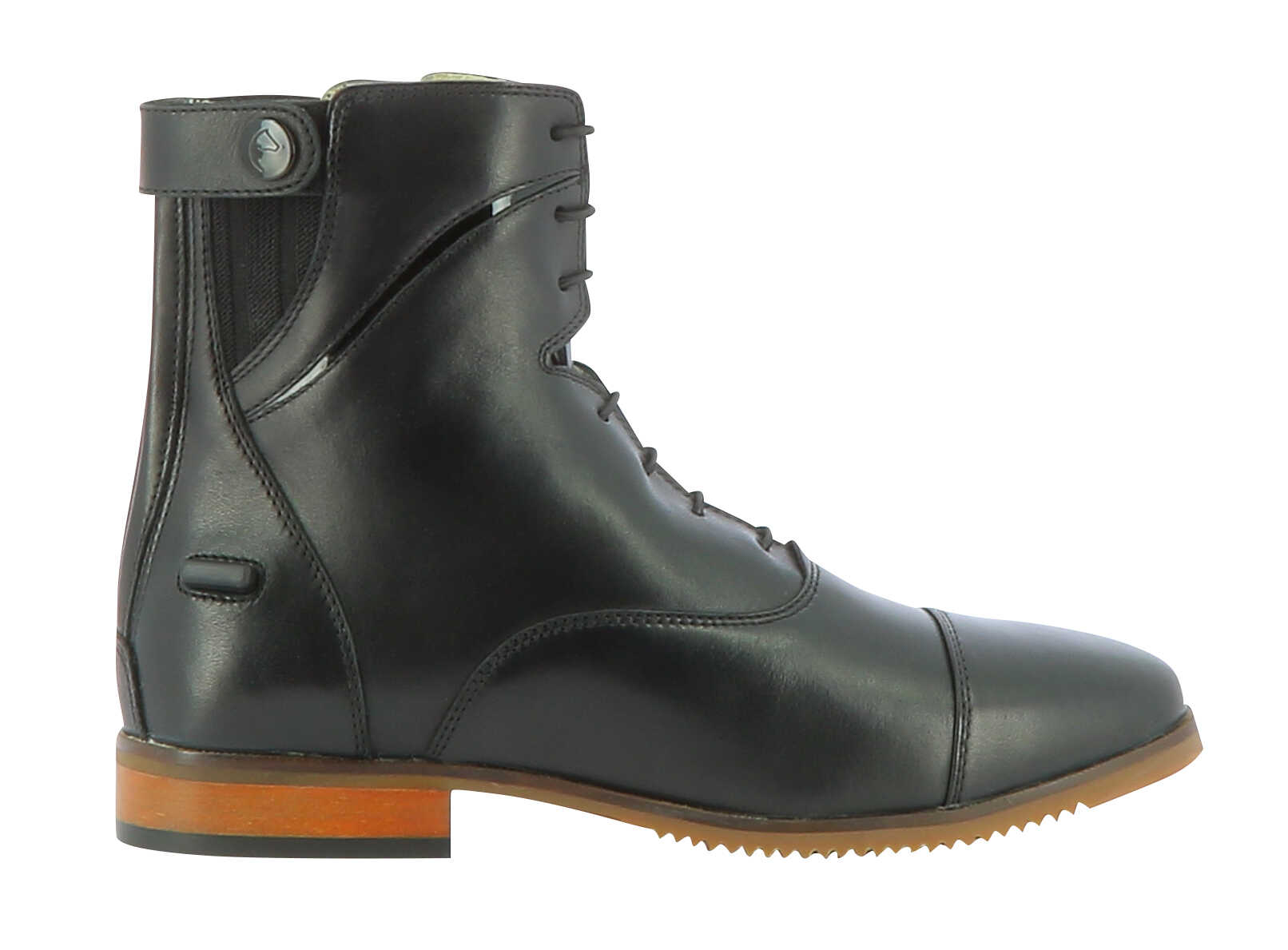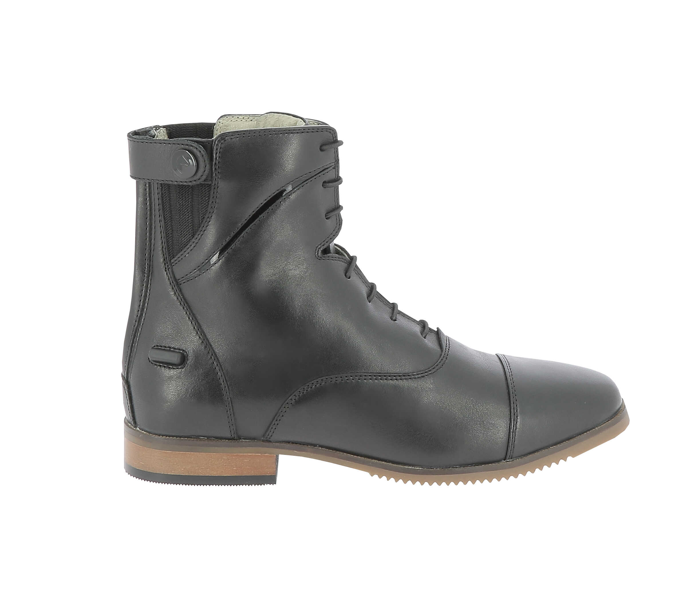 Cowhide leather boots with laces at the front and a back zipper. Non-slip neolite outsole for better grip, masonite heel. Side spur cleats. Equithème logo on the outsole. Matches other boots from the Wavy collection, as well as boots. Care instructions: glycerin soap.