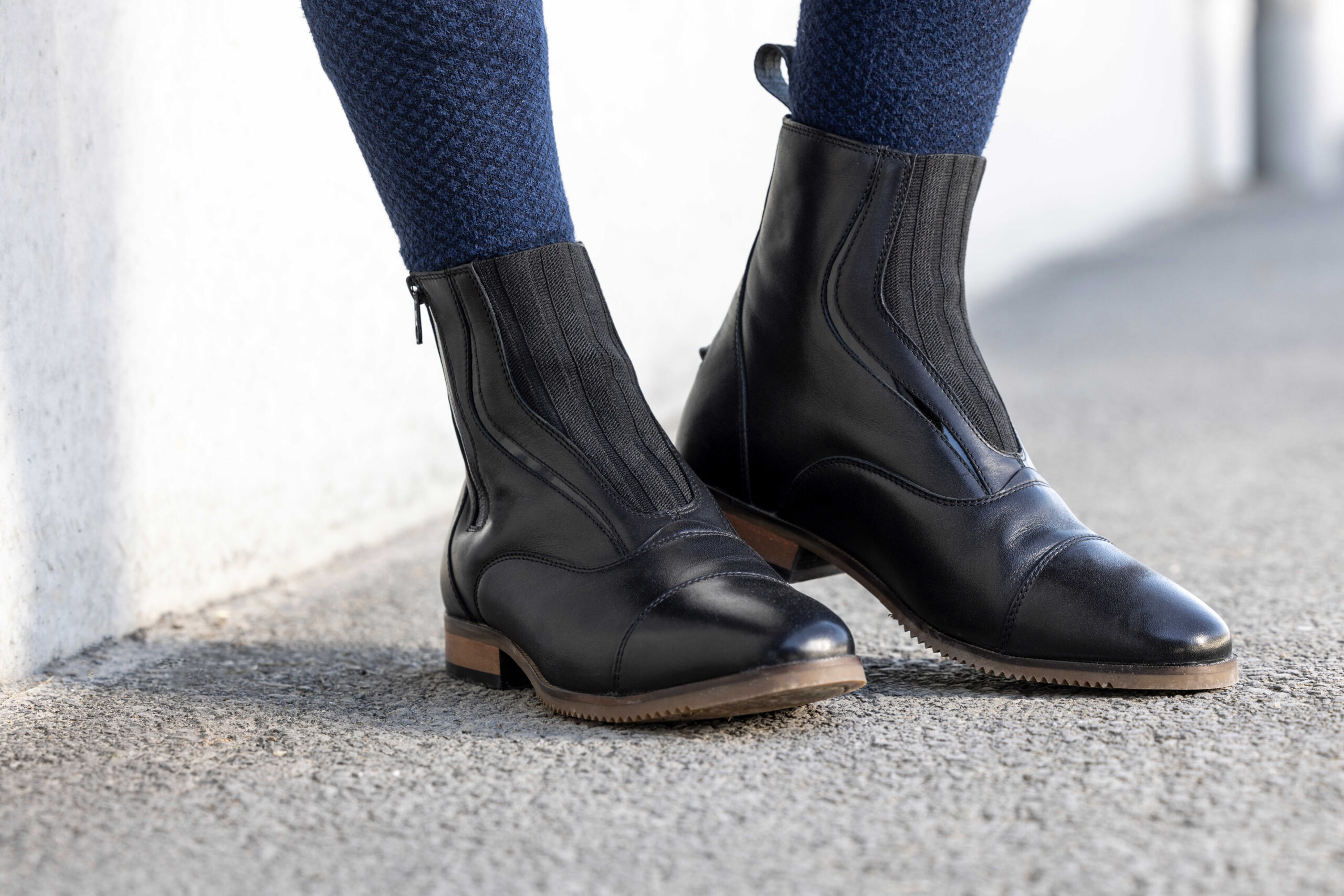 Cowhide leather boots with pigskin lining. Side zip closure with elastic at the front. Non-slip neolite outsole for better grip, masonite heel and rear spur block. Matches other boots from the Wavy collection, as well as boots.
