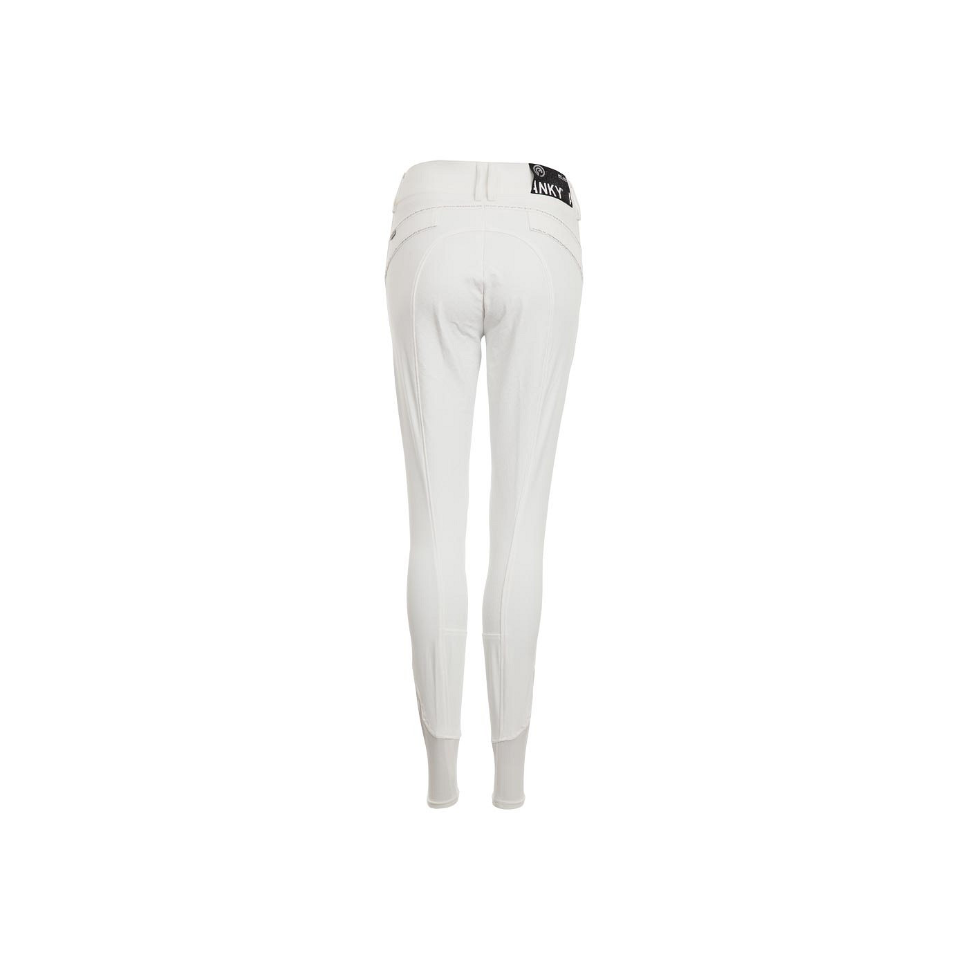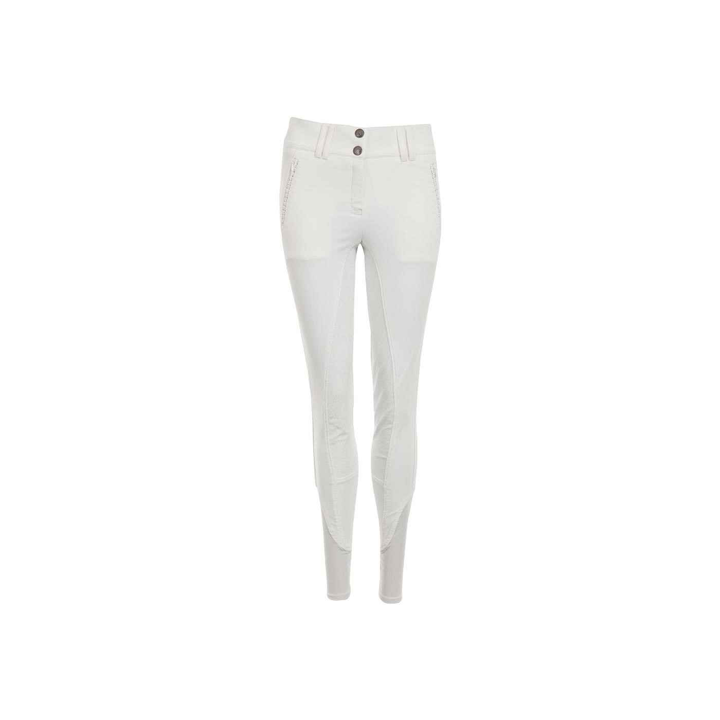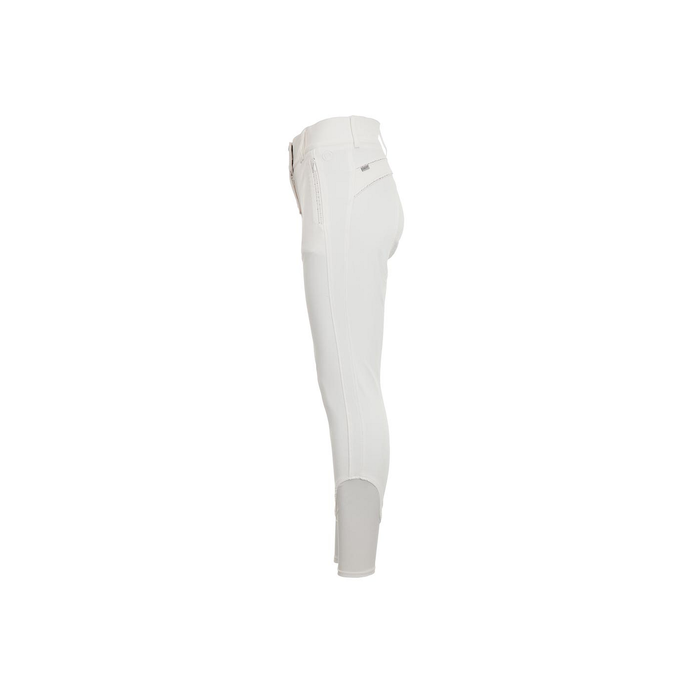 The stylish glittery details and the beautiful high waist of these breeches will make you look gorgeous. The two hidden zipper pockets in front are decorated with shiny imitation diamonds alternated with decorative silver stitching. The same pattern of stitching and diamonds is also featured at the back yoke and the fake pocket flaps. Enough Bling without overdoing it! The breeches are made of Aqua-X, a technical fabric that has a high absorbency, dries fast and helps to regulate body temperature.