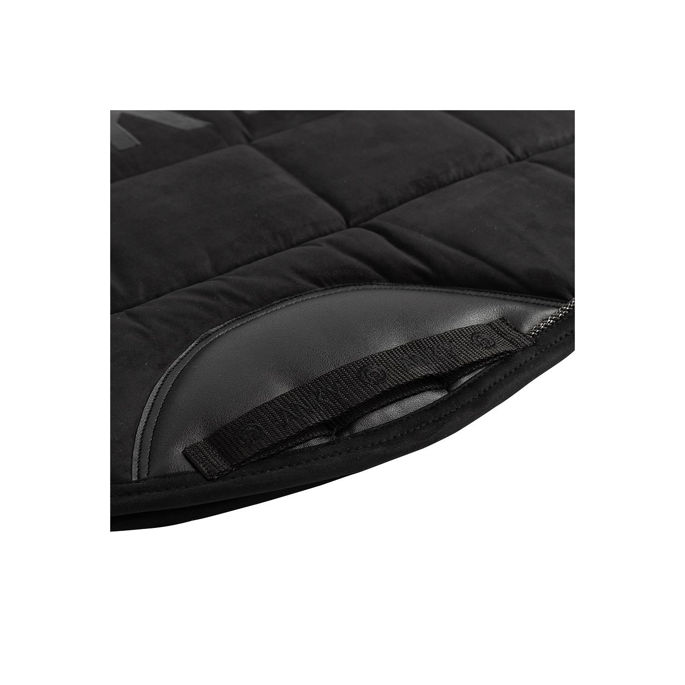 The lining is anti-static, moisture-regulating, moisture-wicking and extremely quick-drying, to ensure that your horse’s back stays dry. The saddle pad is proportionally filled with a synthetic filling for good shock absorption. The anatomical shape ensures that the saddle pad falls nicely on the back and stays in place. In addition, the leather PU patch and double girth loops ensure a more stable position of the girth straps. The anti-slip letters on the side and double girth loop ensure a stable position of the saddle.