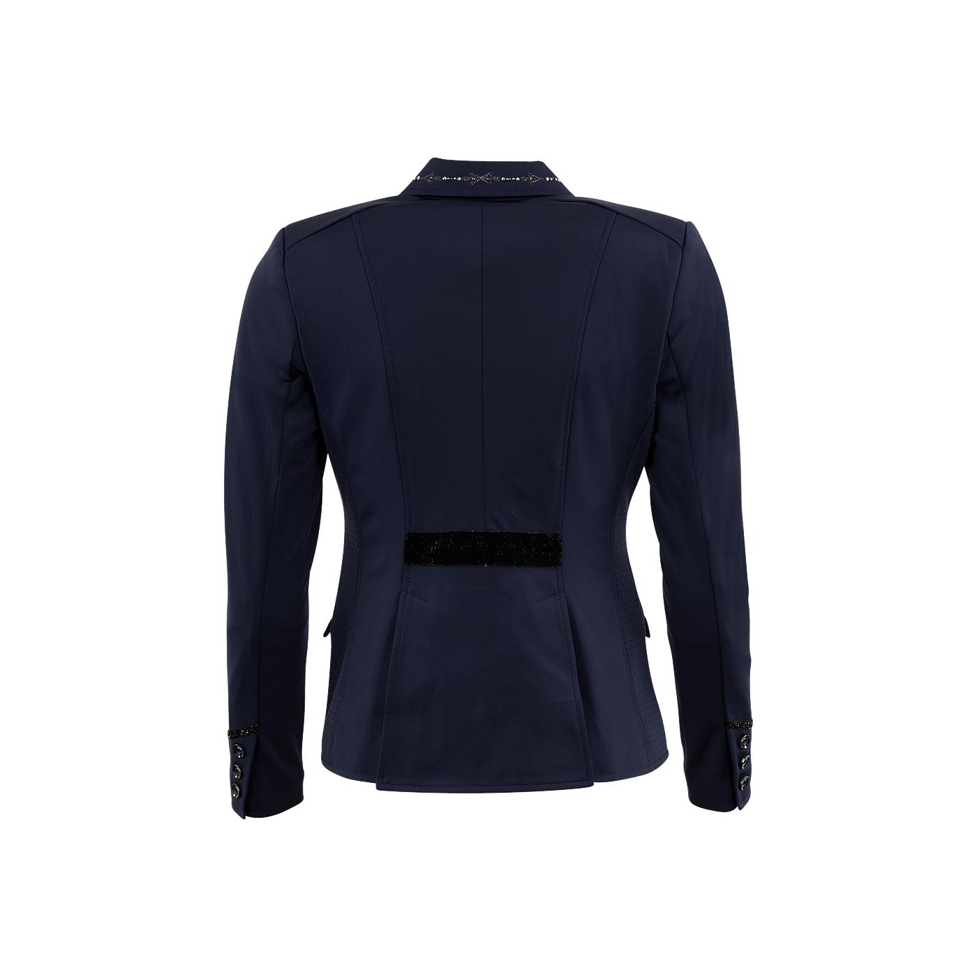The ANKY® Platinum Riding Jacket has a shiny look thanks to the rhinestones on the collar, the silver edged buttons and the finish with black-silver velvet tape.