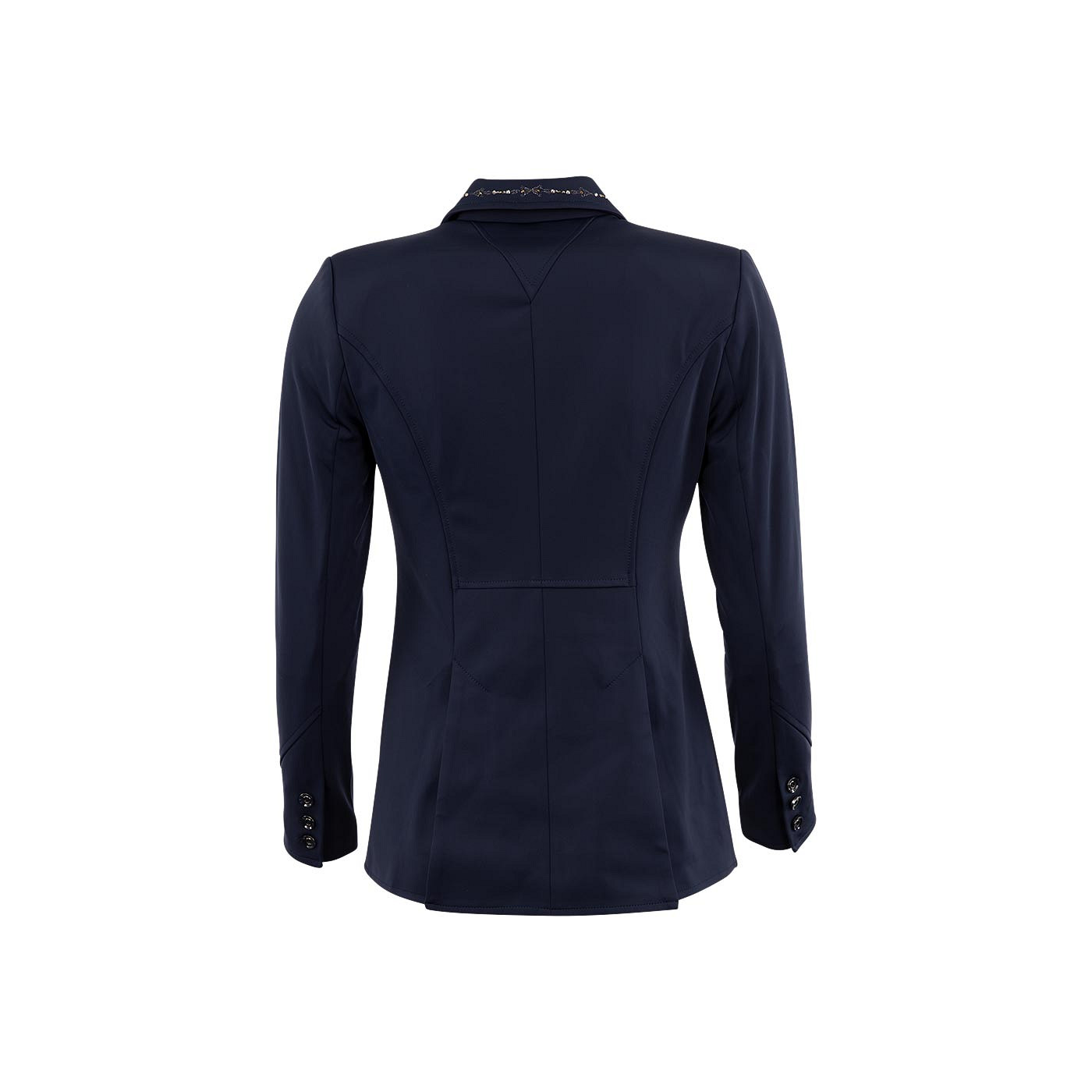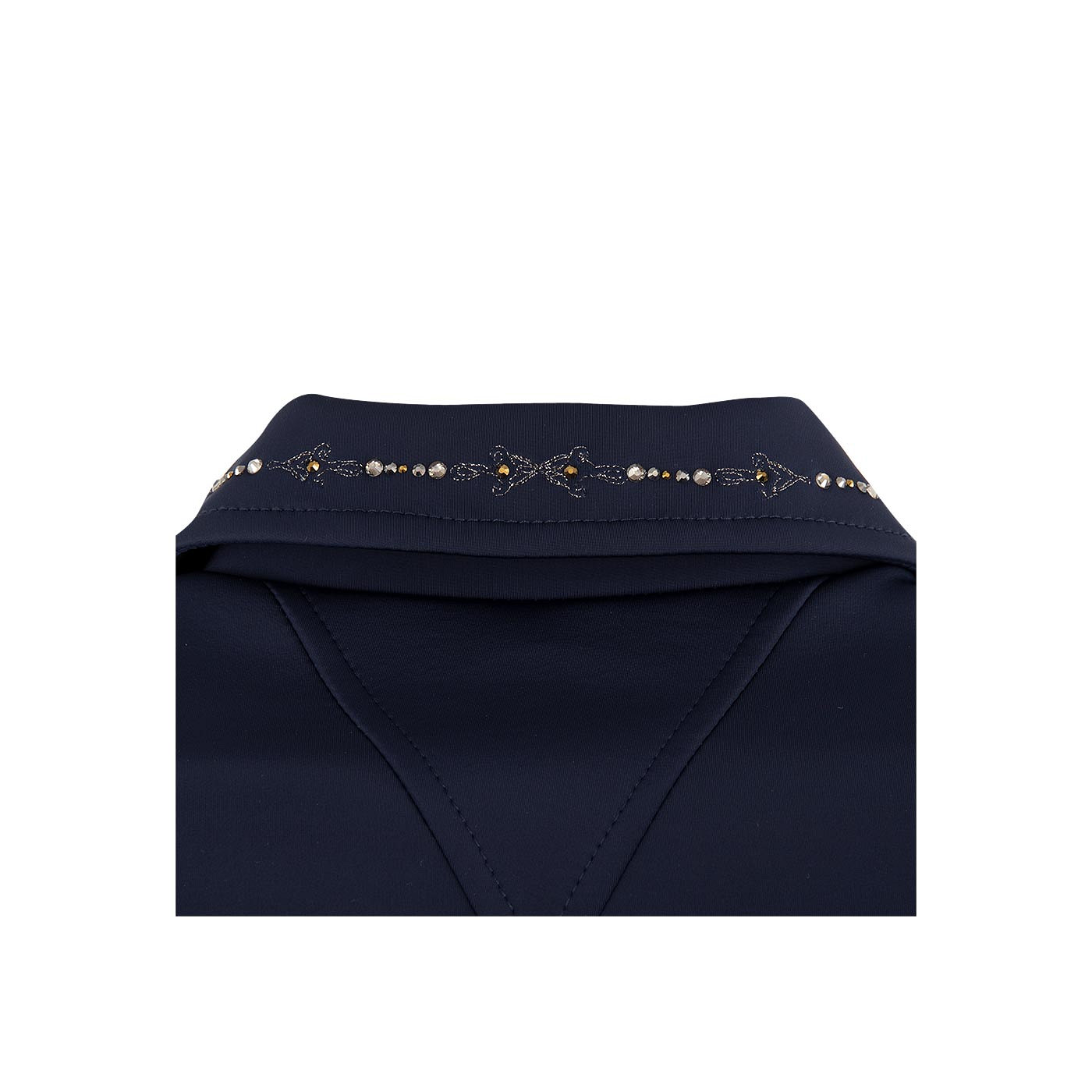 The graceful embroidery combined with rhinestones in different sizes and colours on the collar gives this competition jacket a chic look.