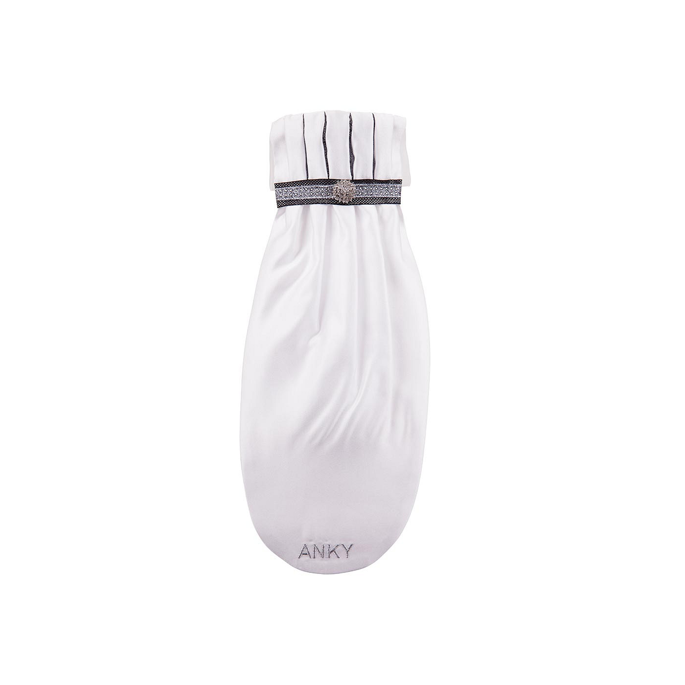 Add a some glamour to your outfit with the Pleated Crown Stock Tie. The stock tie has a detachable broche, contrasting ribbon and silver piping on the top for a sophisticated look. A beautiful eye catcher for your competition outfit! Delivered with wash pouch.