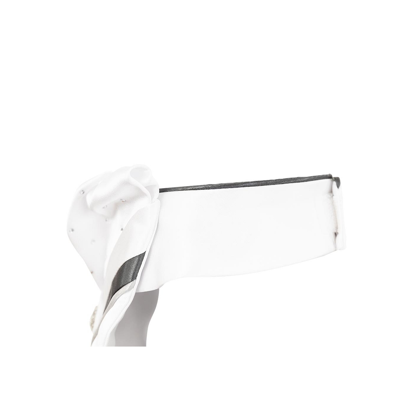With the ANKY® Stock Tie Symphony you appear extra radiant and stylish in the competition ring. The pleated part is finished with rhinestones and the silver pin of imitation diamonds on the fold is a real eye-catcher. In addition, the stock tie is equipped with a silver and dark-coloured contrast tape and silver embroidery at the bottom. The stock tie is easy to attach thanks to the Velcro strap and is machine washable in the included laundry bag.