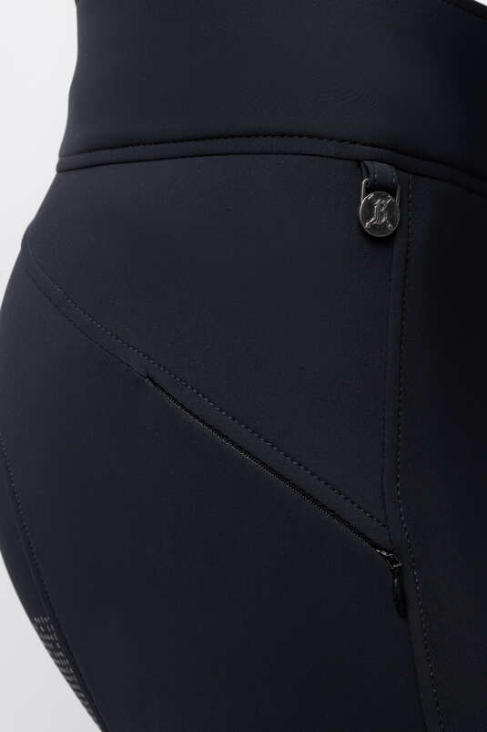 Warm winter breeches will be your best friend for cold weather riding. These high waist breeches have a nice stretch, a hidden zipper pocket on each thigh with space for a phone. The B Vertigo Thermo Silicone Full Seat Breeches have a special shaped back seat seam for a comfortable fit.
