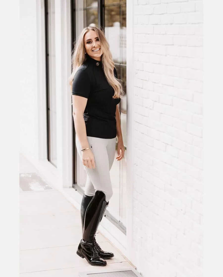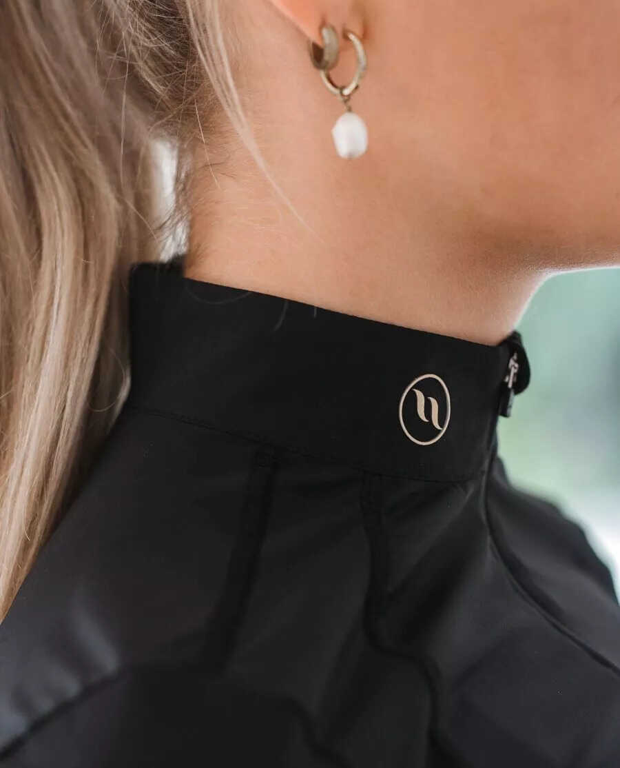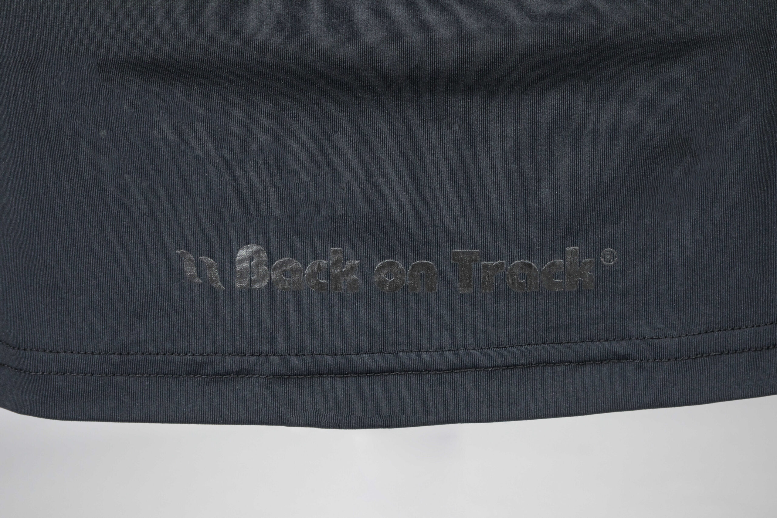 – Stand-up collar with a subtle Back on Track logo in matte gold.