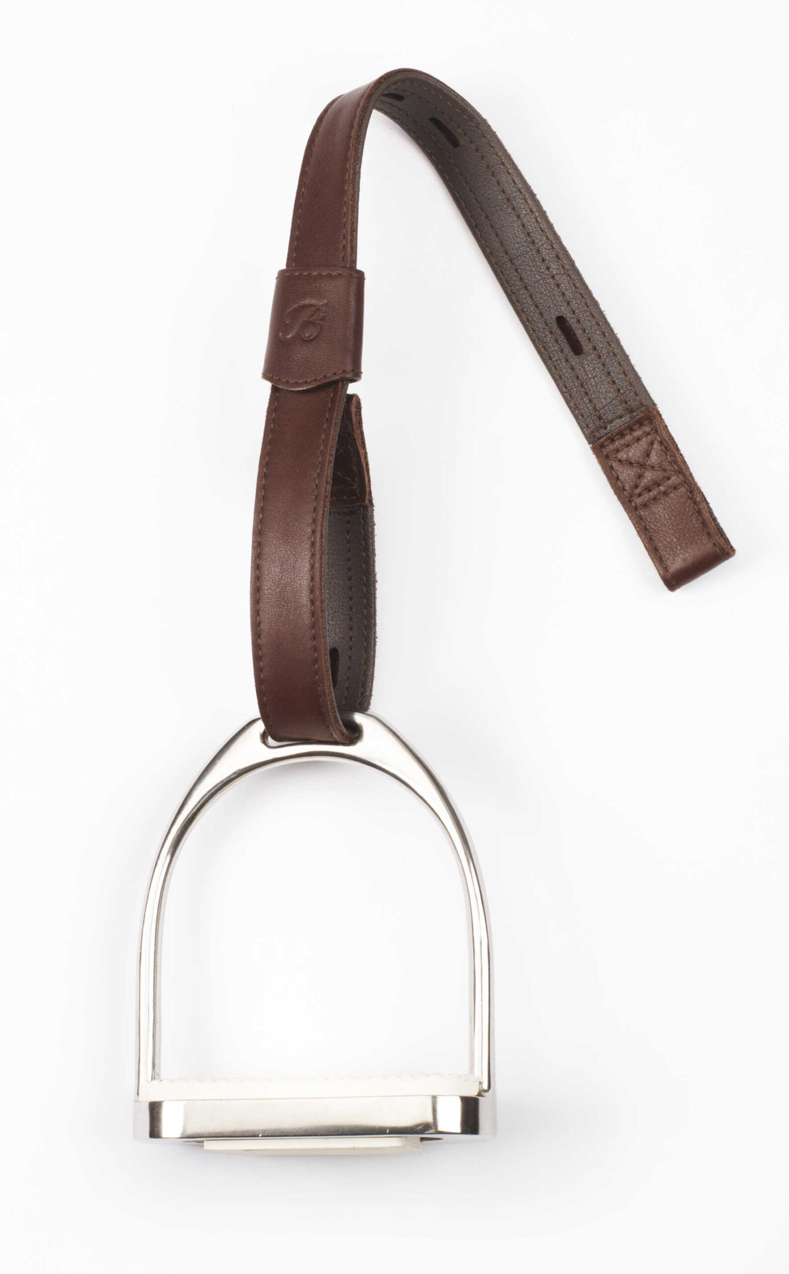 Cowhide leather exterior with synthetic inner reinforcement to prevent stretching. Tested to more than half a ton of tensile strength. Stainless steel buckles.