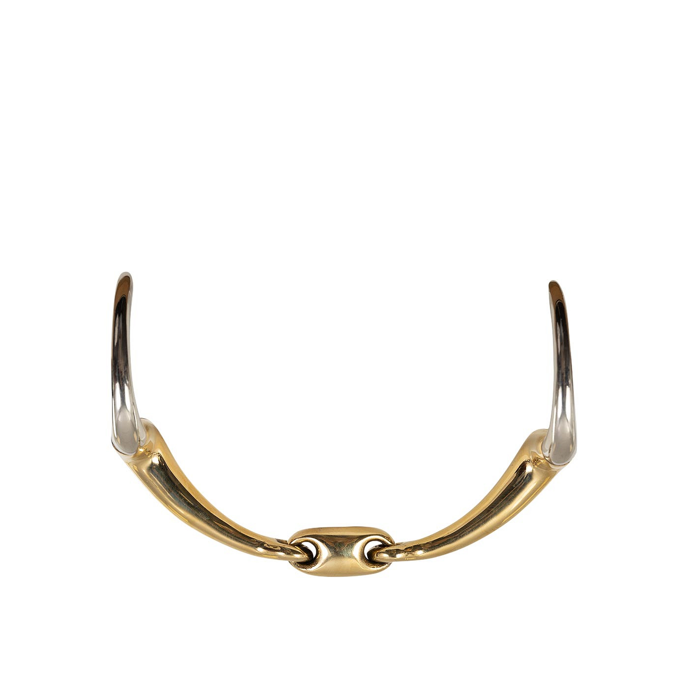 The Magic System bit combines the flexibility of a jointed bit with the control that gives an unjointed bit. The exclusive, patented design prevents the bit from bending completely, causing injuries to the tongue and palate. This bit is suitable for experienced riders and strong horses. It is made of solid Cuprigan with stainless steel rings. Cuprigan is an alloy consisting of 89% copper, 7% aluminium, 3% iron and 1% zinc. The oxidation process of the material gives a pleasant smell and taste.