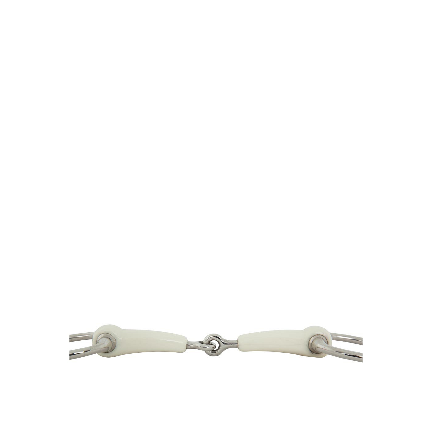 This high-quality single jointed eggbutt snaffle features a synthetic mouthpiece with a metal core and stainless steel rings. Thanks to the combination of flexible synthetic material and high-qualilty stainless steel, the bits are solid, yet very mild and gentle. The synthetic material features a 90A hardness and is FDA approved. This means the material is non-toxic and free of solvents and plasticizers. The bits can be used for all horses and are particularly suitable for young horses; horses with sensitive mouths and horses that are having difficulty accepting other materials. The bit applies very mild pressure on the mouth. Mouthpiece thickness 18 mm, ring size 70 x 45 mm.??