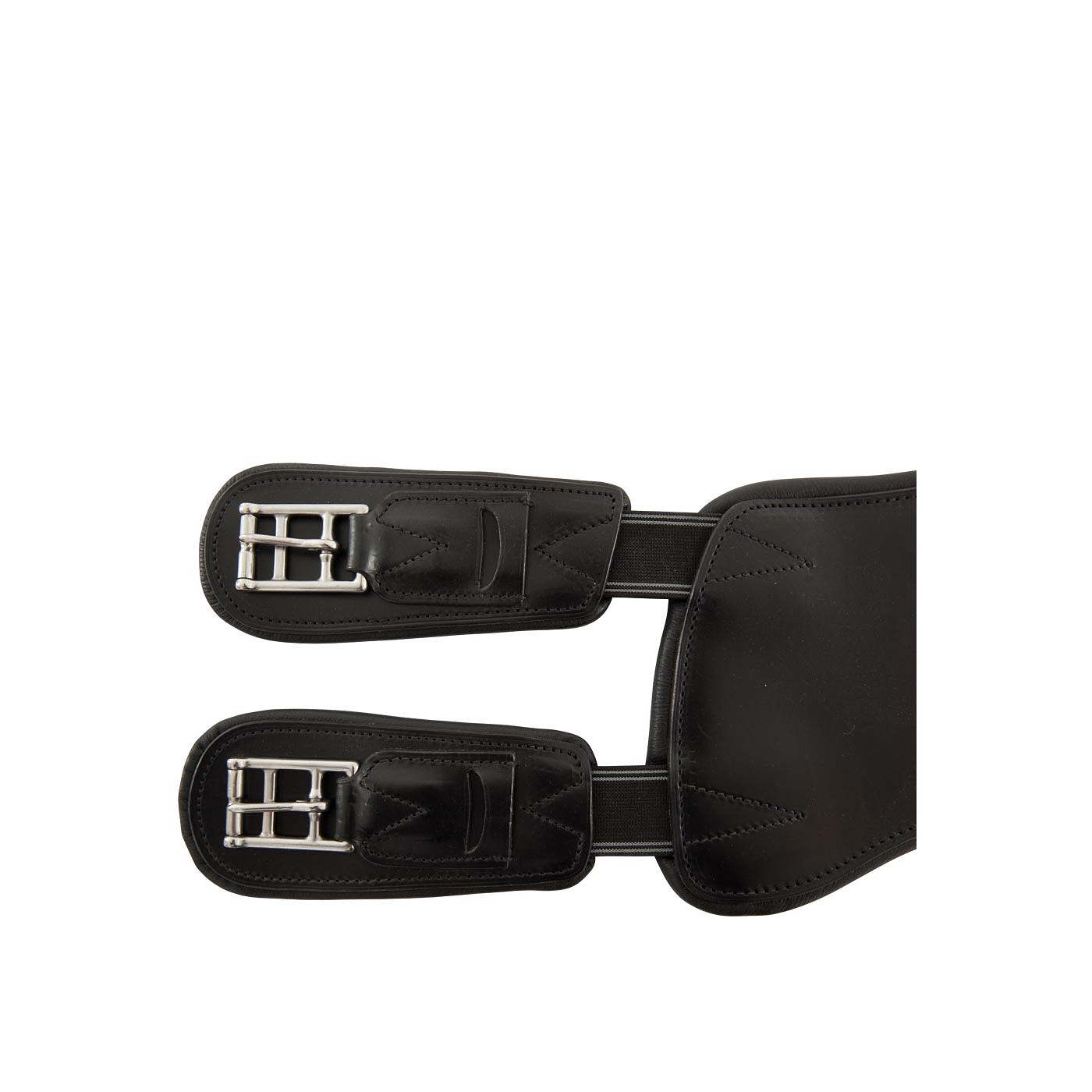 Leather, anatomically formed dressage girth with a wide, fixed belly guard and elastic billets. The broad belly guard and distance between the billets ensure a decreased pressure on the sternum and improve the stability of the saddle. The inside of the girth contains gel for more comfort. This girth is not recommended for horses with a big belly.