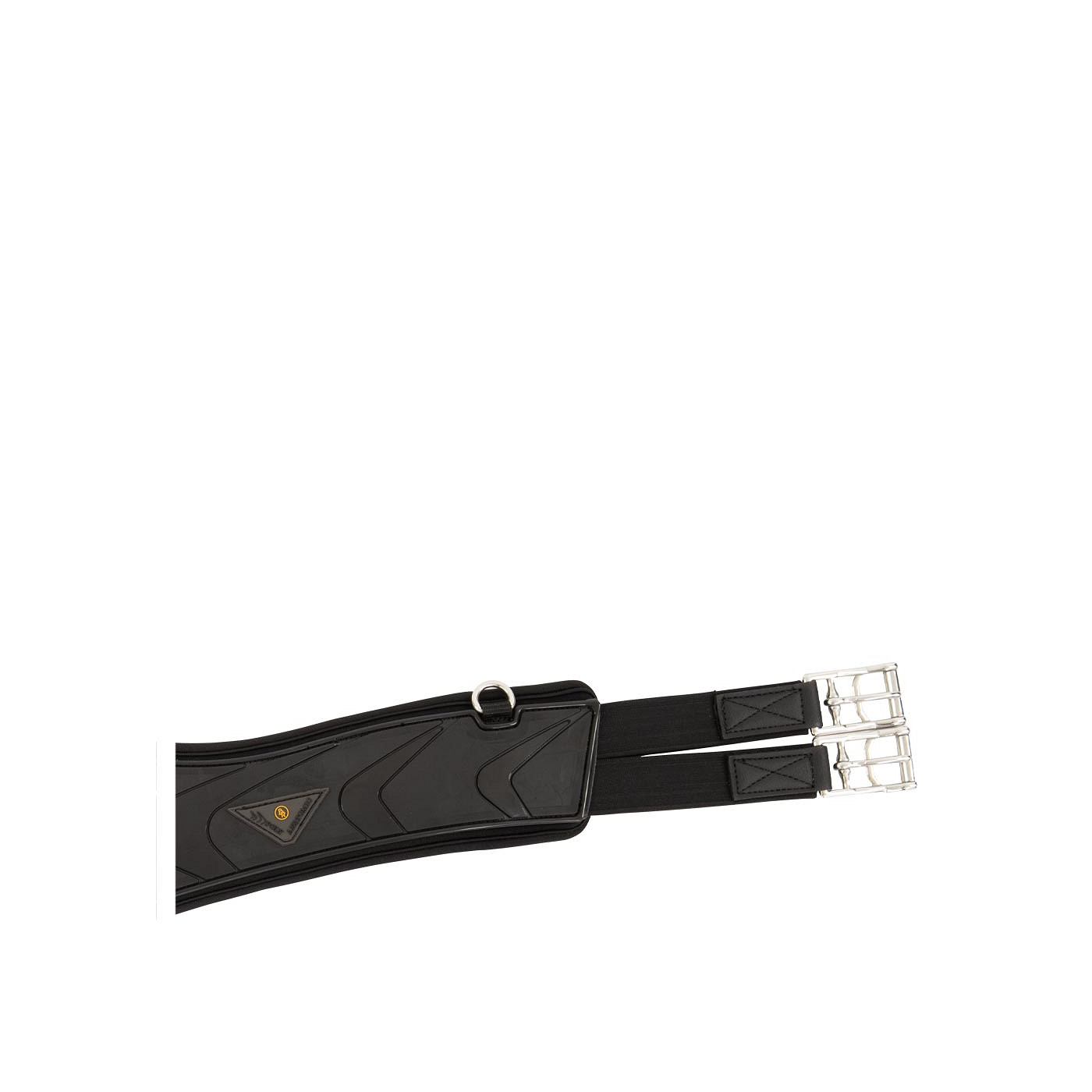 The Poly Anatomic general purpose girth is lined with soft neoprene. The anatomic shape of the girth gives the horse maximum freedom of movement. The girth has elastic on both sides and elegant roller buckles. The elastic inserts offer extra comfort and make it easier to girth your horse. There are two D-rings in the middle and a small D-ring on both sides for the possible attachment of draw reins. The girth is easy to clean.