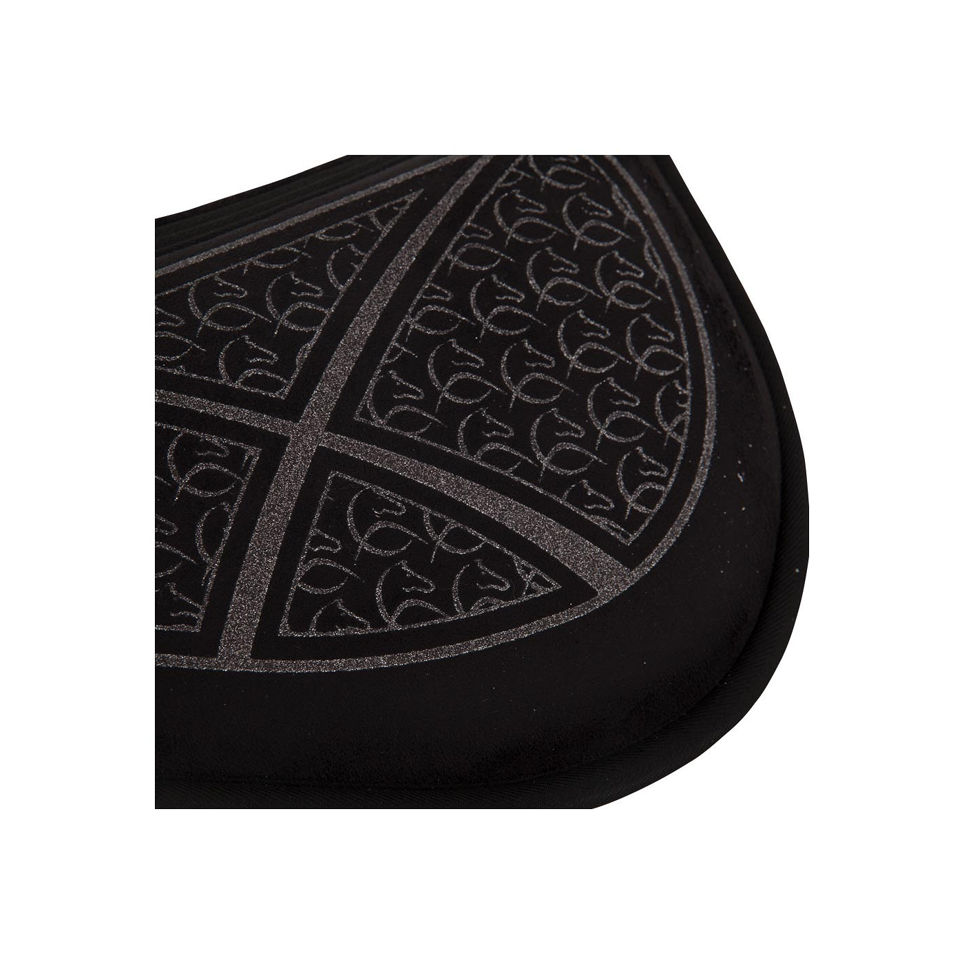 This anatomically shaped microfibre half pad features an anti-slip print on top to ensure a stable saddle position. The pad is filled with memory foam. This material distributes the weight of saddle and rider very evenly across the horse’s back. This reduces the risk of pressure on the spine and withers. Memory foam also provides excellent shock absorption. The material reacts to body heat, adapting perfectly to the contours of the horse’s back, which prevents rubbing. The breathable pad fits under all saddles and can be used directly on the horse’s back or between saddle and saddle pad. Machine washable at 30°C.