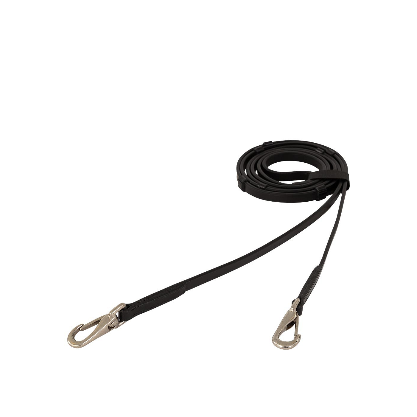 This leather rein is made of high-quality leather that is sturdy and stays beautiful for a long time. The rein is closed in the middle and has a thickness of approx. 13 mm (4/8″). The rein has no less than four rein stops on both sides. With the strong snap hooks at the ends, you can easily attach the reins to the bit.