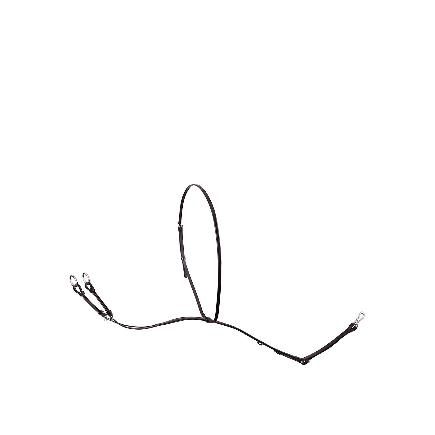 Supple, leather martingale with stainless steel buckles. The martingale, mostly used by jumping, prevents the horse from throwing its head. The martingale adds leverage through the reins to the bit on the bars of the horse’s mouth, not on the less sensitive mouth corners.