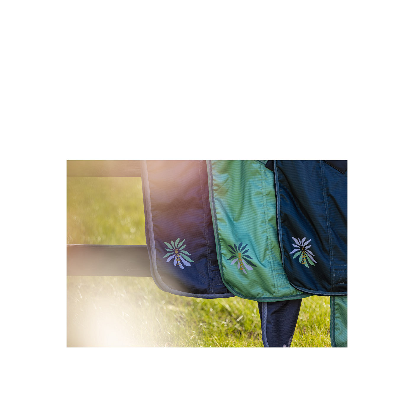 The Mini-Horse rain rug is colourful and specially designed for the smallest horse breeds and ponies. The anatomically shaped horse rug with double-stitched back seam keeps your horse dry and comfortable during rain showers and is made of sturdy 600D polyester that lasts a long time. Thanks to the taped seams, the rain doesn’t get a chance to penetrate the rug. The shoulder gussets and pleats ensure optimal freedom of movement and a nice fit. The rain rug has a soft lining at the withers to prevent chafing.