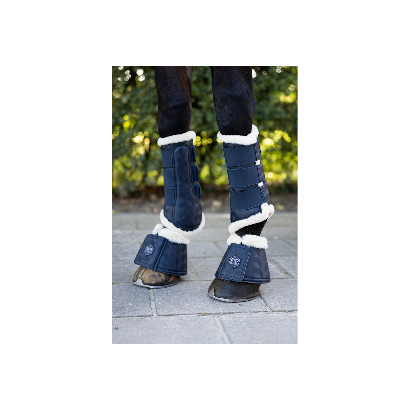 The Zamora competition over reach boots stand out because of the exterior of PU with a 3D cube print. On the inside there is a shock-absorbing neoprene lining and the edge is finished with wonderfully soft, synthetic sheepskin. The over reach boot closes with a wide, double Velcro closure for extra safety.