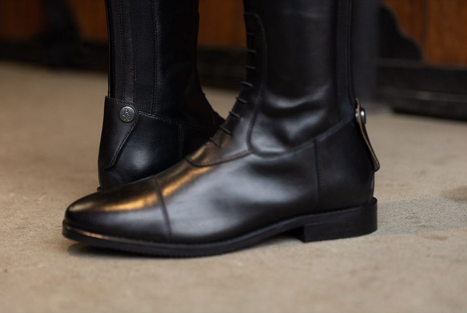 The boots are lined with a thin layer of leather with a soft finish for optimal comfort. The insole has a thickened silicone heel support to ensure that the boots walk extra comfortably and offer optimal support. The elastic lace and the long YKK back zip with elastic along it offer firmness and a snug fit. The zipper is also equipped with two zipper protectors. The reinforced heel and toe section provides extra protection for the foot. The outside features non-slip, waxed leather on the inside of the leg for extra grip while riding your horse. The handmade outsole has a renewed self-cleaning motif to ensure that dirt cannot accumulate.