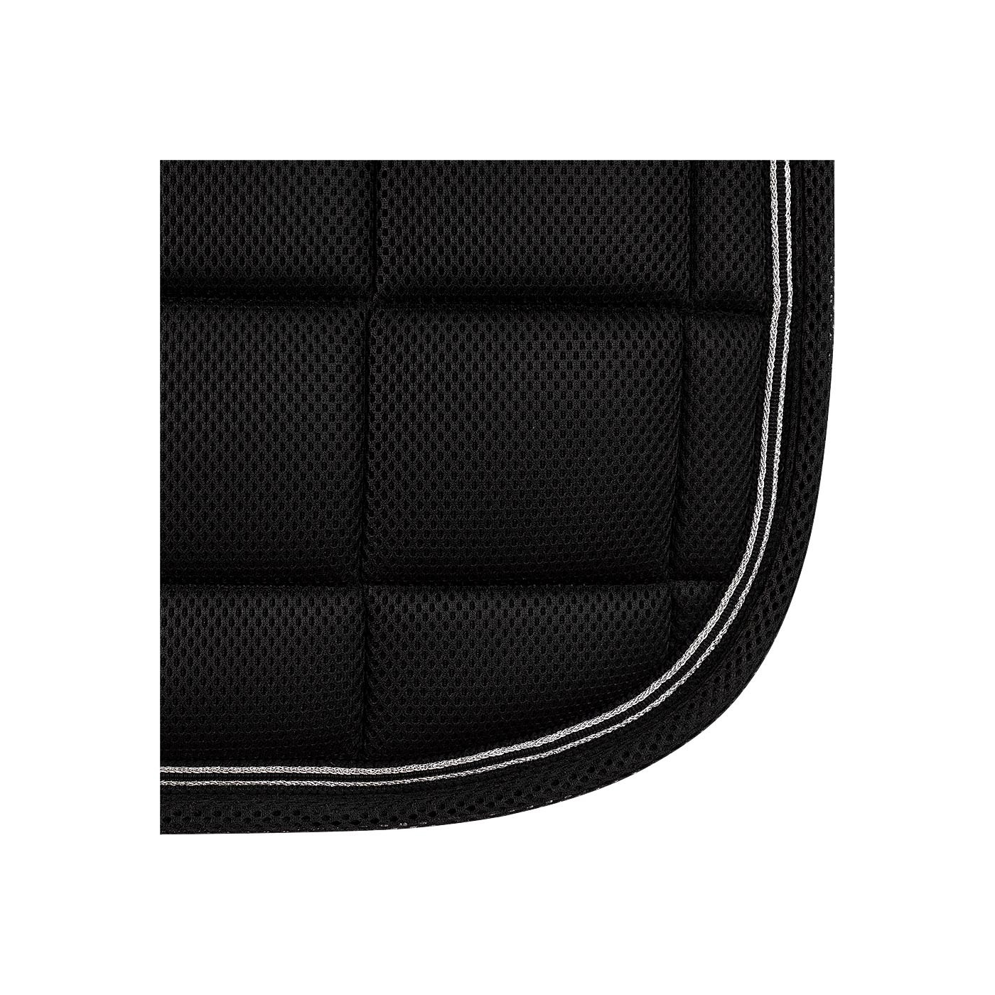 The saddle pad has a sleek square stepping and is equipped with short, detachable retaining straps with Velcro and girth loops with Velcro. The double silver-coloured piping gives the saddle pad a chic look.