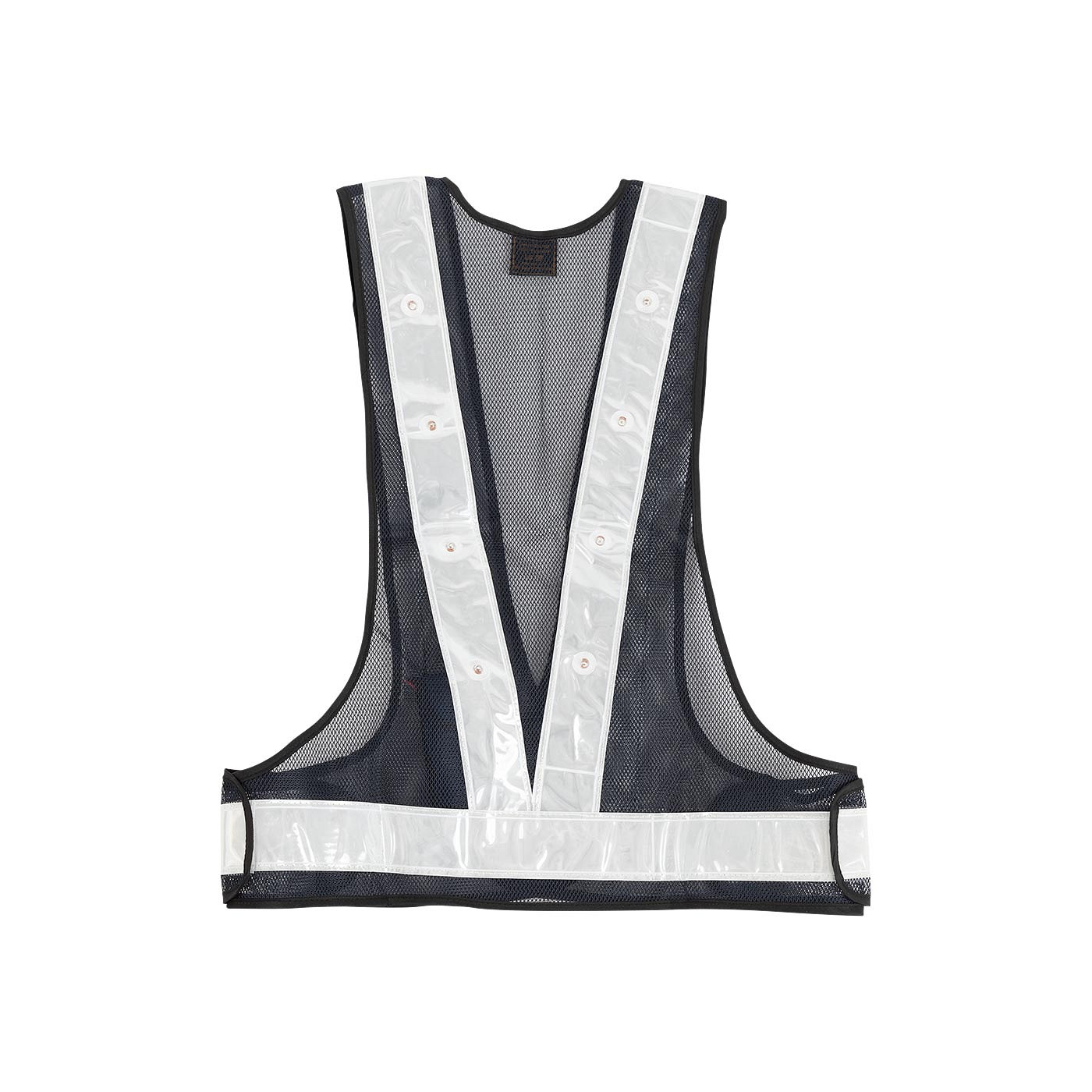 The vest contains a reflective, white stripe to increase visibility. The LED lights are white on the front and red on the back. The lights have no less than three modes: fast flashing, slow flashing and switched on without flashing. On the inside of the vest there is a pocket with Velcro closure for the battery holder with on/off button for the lights.