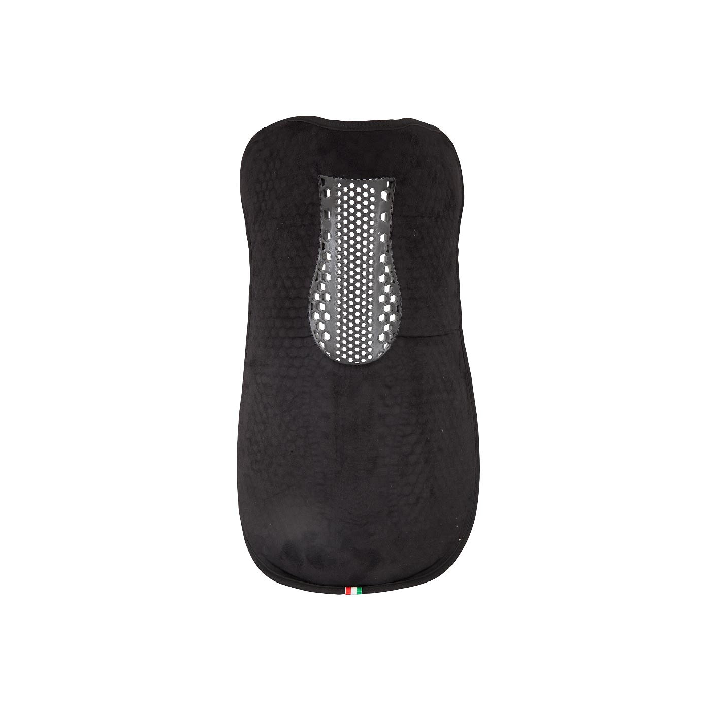 This anatomically shaped gel pad has a soft gel honeycomb profile on the top and a microfibre lining on the underside. The pad is unlined at the withers and extra space has been kept for the spine so that air can circulate freely over the horse’s back. The soft gel honeycomb profile absorbs shocks and stabilises the saddle. BR therapeutic soft gel has excellent anti-slip properties, does not support bacterial growth and is non-toxic. The pad can therefore be used directly on the horse’s back, or between saddle and saddle cloth. BR soft gel pads fit under all saddles and are machine washable at 30°C.