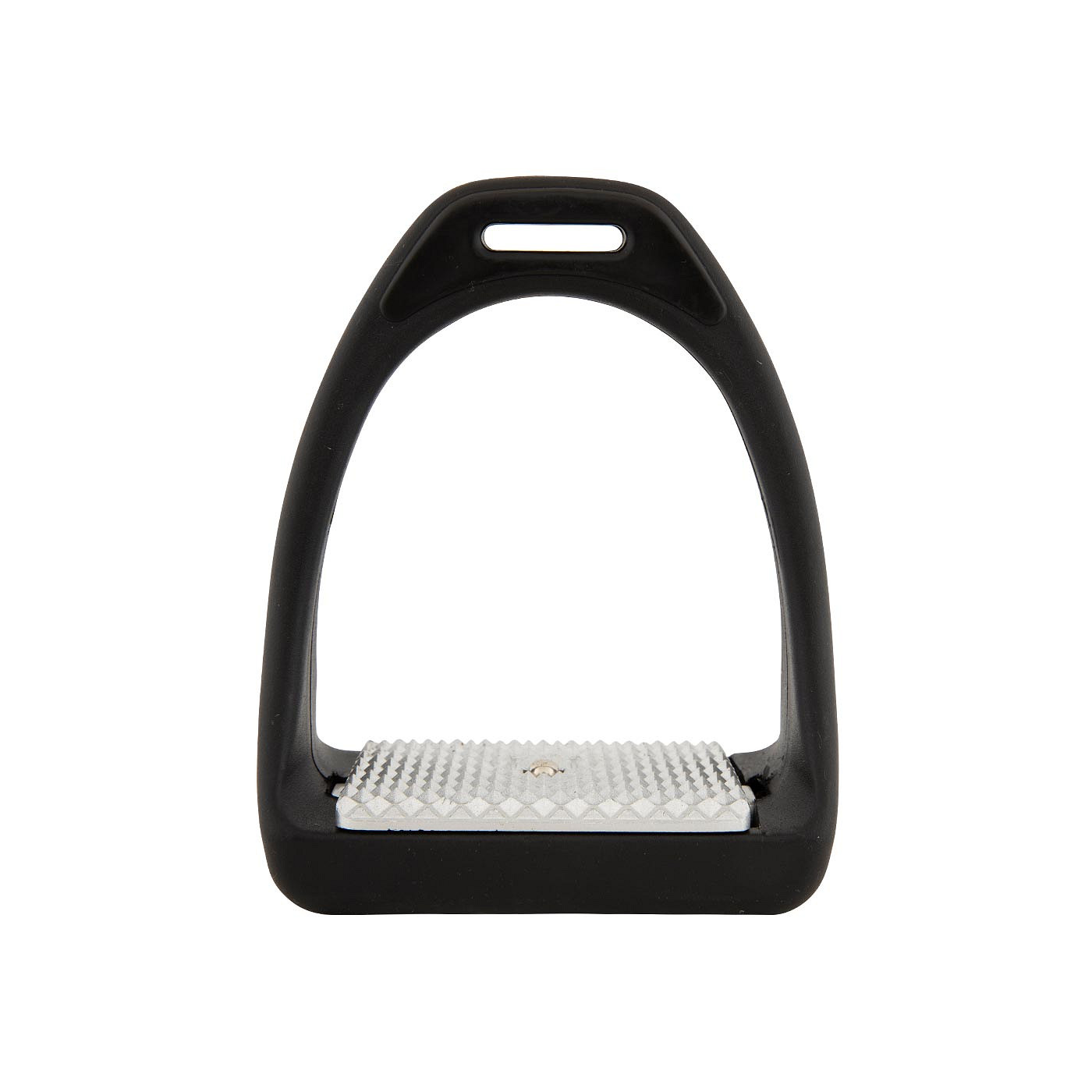 This stirrup is made of nylon. This material is sturdy, lightweight, durable and easy to maintain. The tread is shock absorbing with a fine pattern. The tread follows the natural movement of the foot, provides stability and increases comfort levels. The shock-absorbing treads are durable and perform perfectly in cold and hot weather conditions.