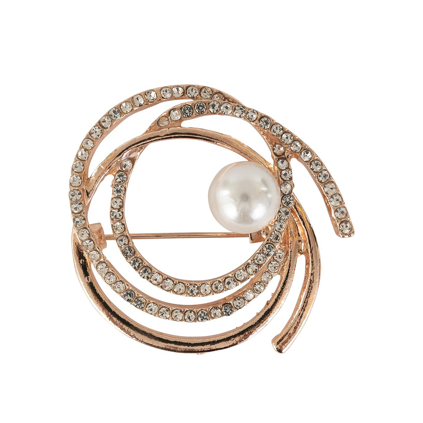 This elegant stock pin is the perfect addition to your competition outfit. The pin is round shaped and finished with rhinestones and an imitation pearl. The metal pin closes with a brooch clasp. PU3.