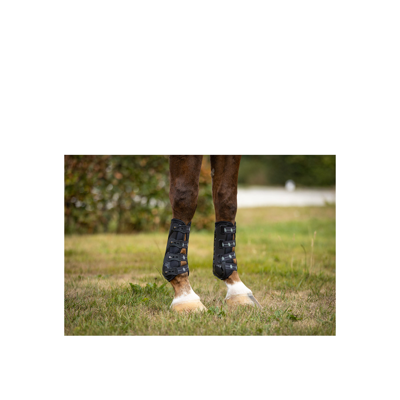 These luxurious BR tendon boots have no less than four handy quick release closures with an elastic strap. This allows you to attach or remove the protectors around the leg in no time. Unlike with Velcro, you can always fasten the tendon boots to the same size. This way the protector is never too tight or too loose.