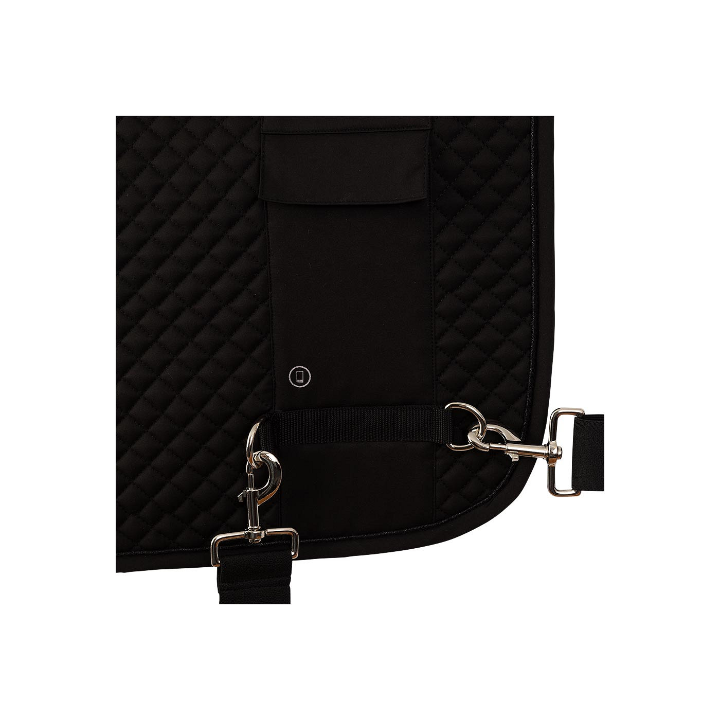 The BR training pad Alaska has a unique design with elastic straps which help the horse to move correctly. Moreover, also the back- and abdominal muscles are trained. The elastic straps are removable and adjustable for a perfect fit. You can easily attach the straps thanks to the snap hooks. On the saddle pad there is a phone pocket so you can keep track of training data.
