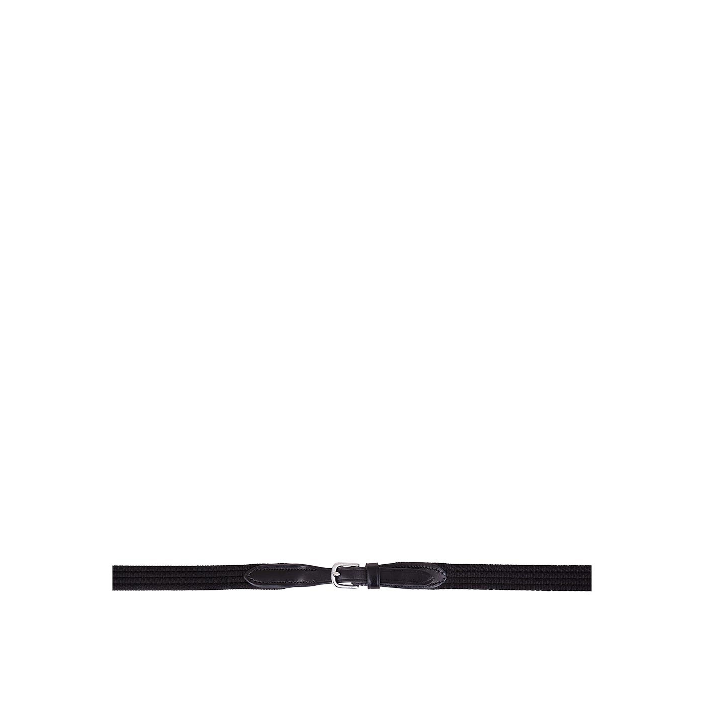 Web reins with round stitched leather ends, hand and rein stops, hook stud billets and a round buckle, 19 mm.