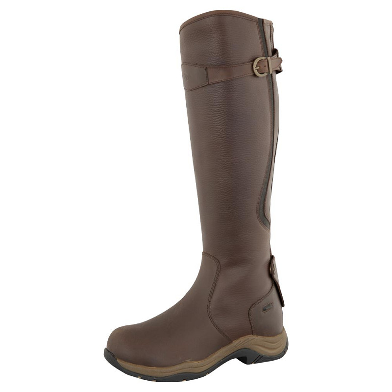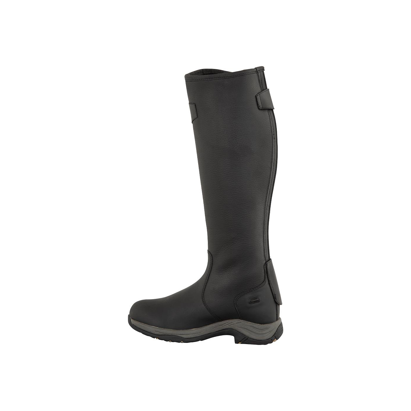 This solid winter riding boot is made of oiled nubuck leather and features a sturdy grip sole made of polyurethane and rubber. The oiled leather is water repellent and practically maintenance-free. The boot is lined with synthetic wool. Its shock-absorbing polyurethane insole features gel foam, which increases comfort. The boot features an extra strong YKK zipper with a zipper keeper at the top and base. In addition, the boot features two spur rests. The small elastic calf insert and the buckled strap are beneficial to the boot’s comfort as well as its look. The shaft leather features a grain texture, while the foot, heel and buckled strap are made of smooth leather. The boot is particularly suited for riding, but can definitely be worn in the stable and for casual purposes as well.