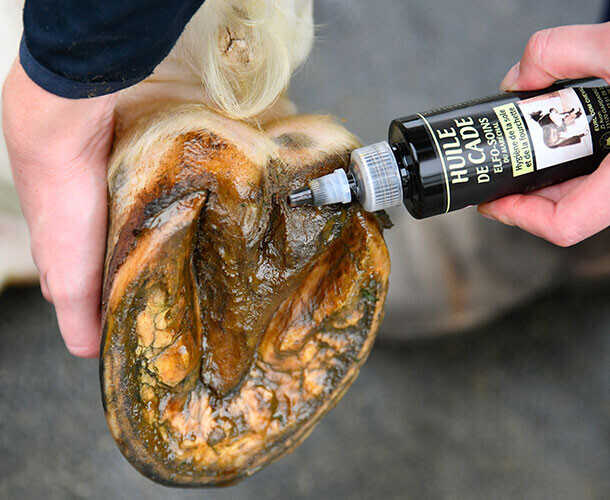 – Apply to the clean, dry frog and sole using the applicator tip and allow to dry.