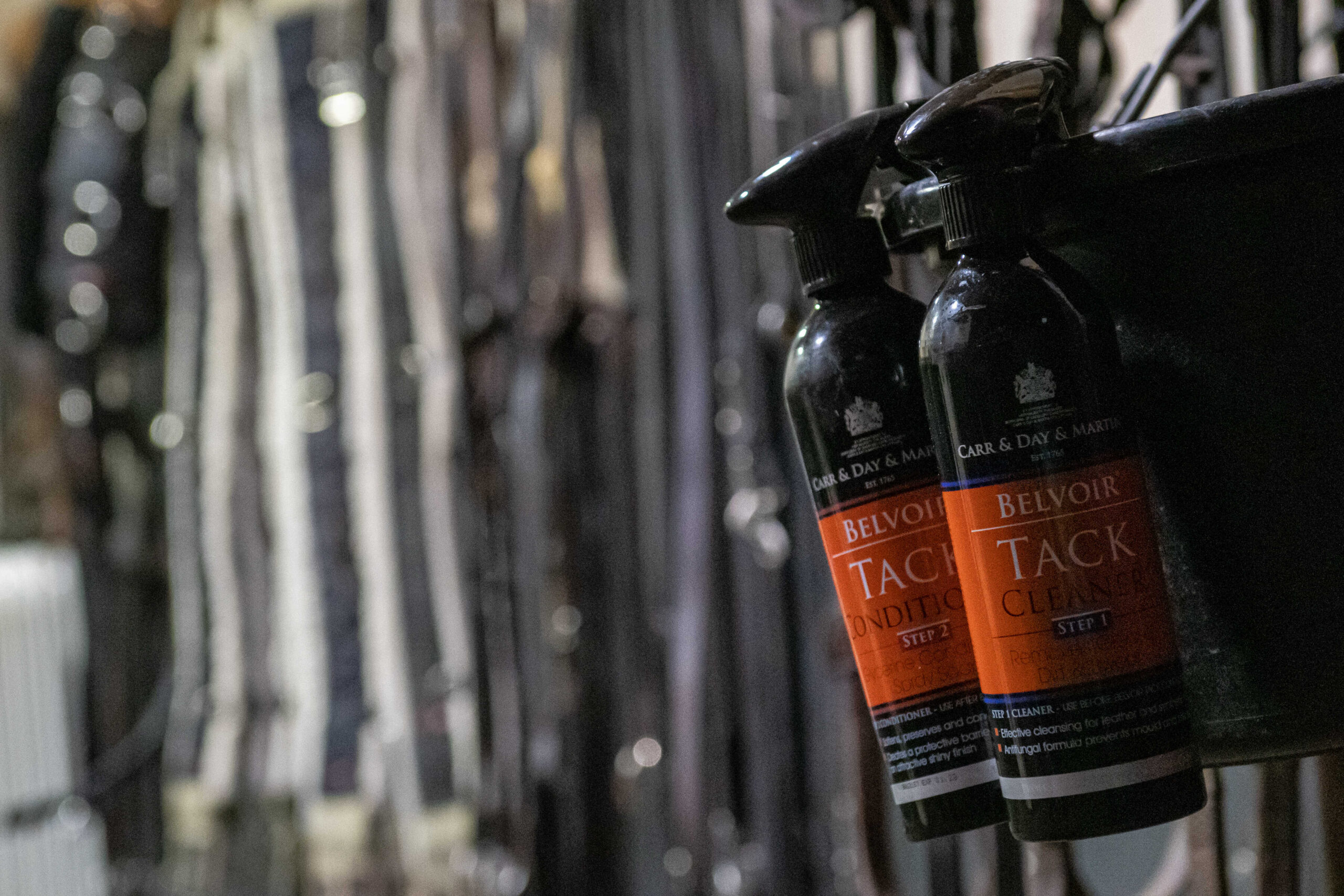 Tack Conditioner Number 2: Apply a revitalizing spray cream to protect the leather and add shine.