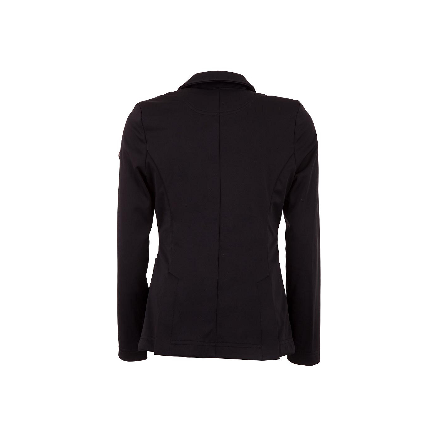 Waisted competition jacket made of 100% polyester soft shell. This comfortable material is water repellent, flexible and lightweight. The jacket features three buttons at the front. A magnetic flag button can be placed on the upper button. Available flag colours: the Netherlands/France (RWB), Germany, Denmark, Sweden, Belgium, Spain and Great Britain. The stylish round slit pockets at the front have a button closure. Both pockets and lapels have been decorated with an elegant rim of diamonds. The sleeves have a comfortable fit. The jacket features two riding slits at the back. Machine washable at 30°C. You can order a free set of two magnetic flag buttons, article 649010, for each competition jacket. Note: make sure that you order these buttons yourself.