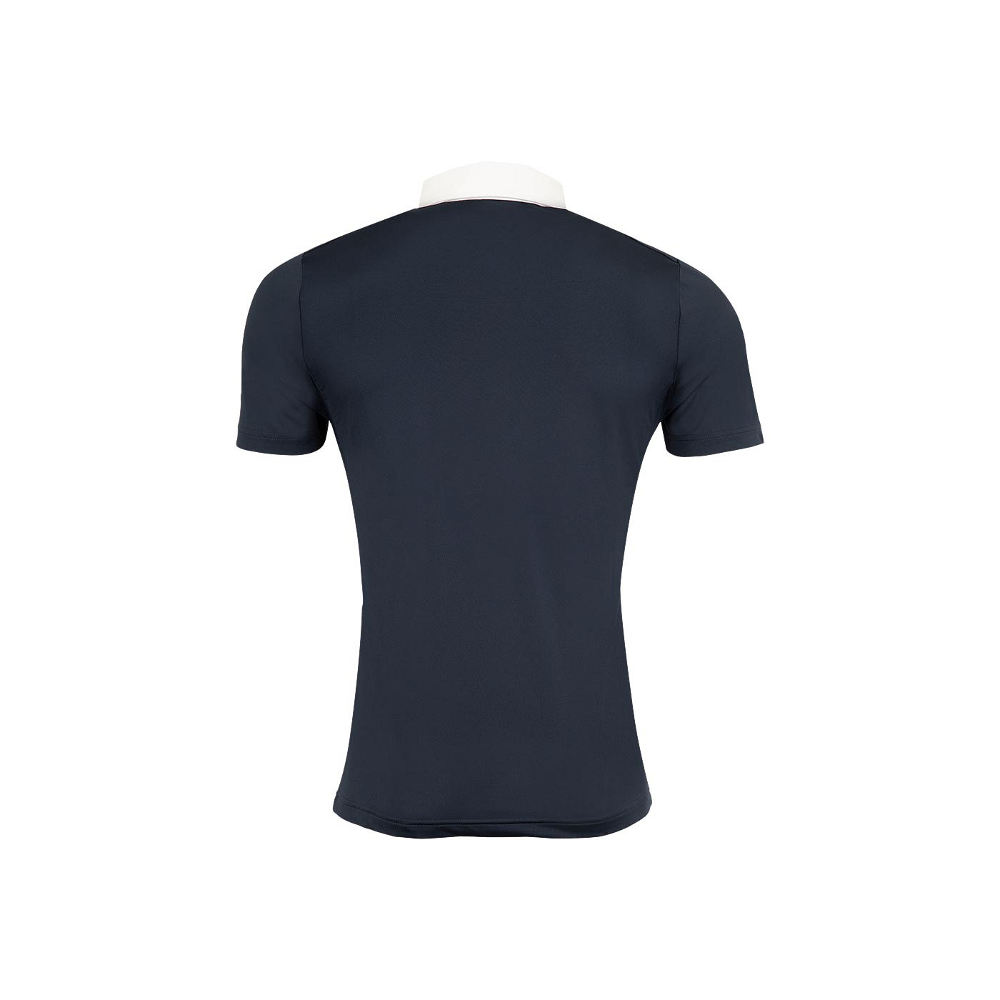 This airy, stretchy competition shirt is suitable for both men and boys. Mesh fabric can be found under the armpits for extra ventilation. The shirt has a polo collar and a button placket with four buttons and at the bottom of the button placket you can find a loop that keeps the tie in place while riding.
