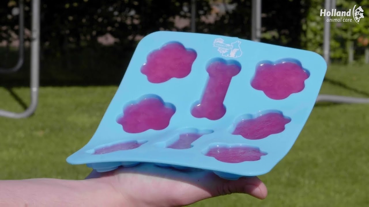 After a few hours in the freezer, the ice is ready and your dog can enjoy a refreshing snack!