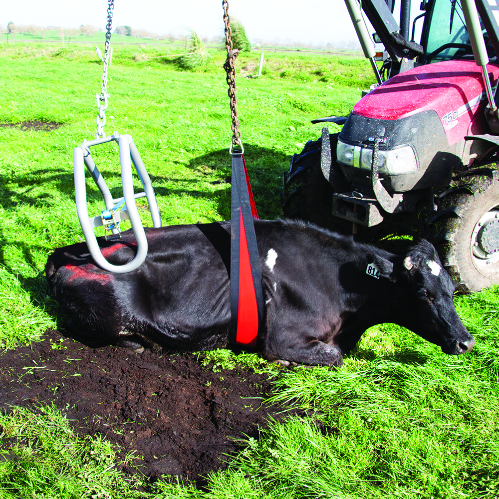 This cow lift is specifically designed to help lift a cow in combination with a hip clamp.