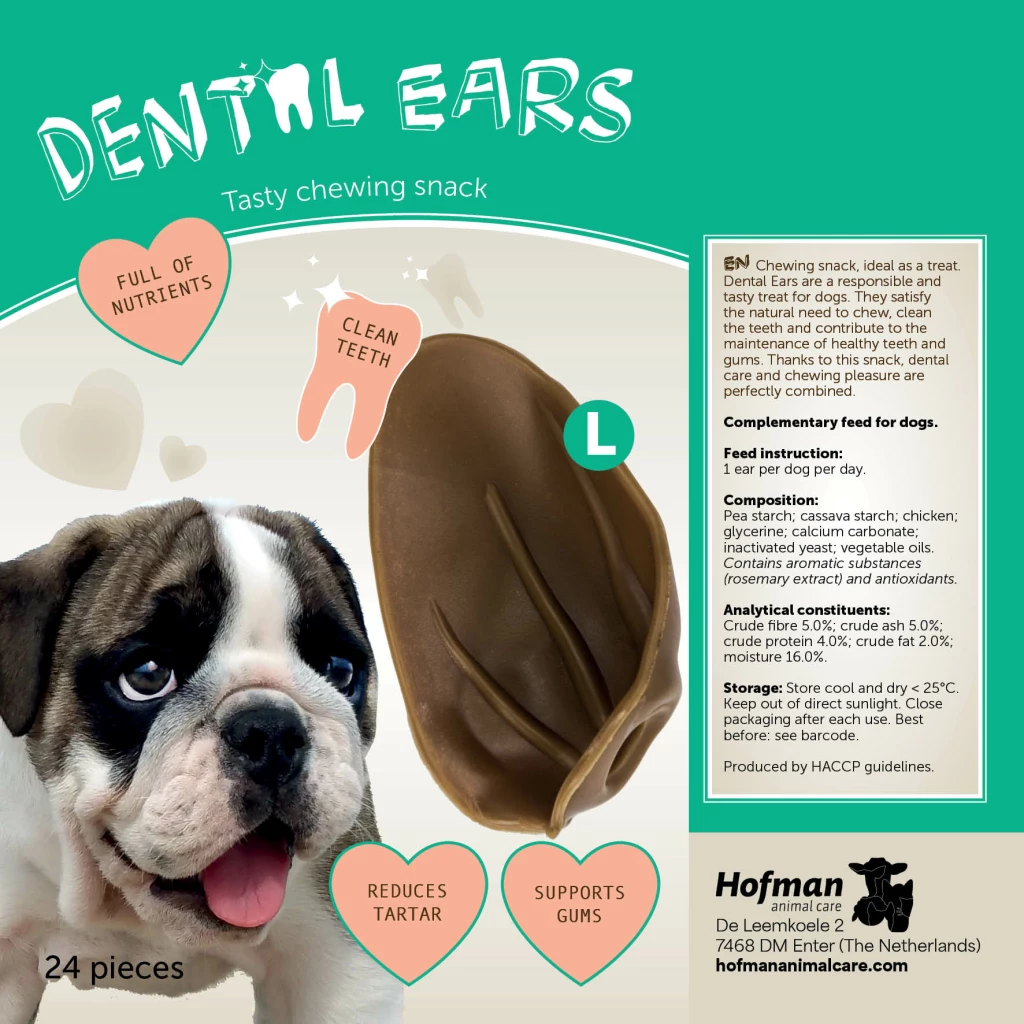 Dental Ears are sensible and tasty treats for dogs. They satisfy the natural need to chew, clean the teeth and contribute to healthy teeth and gums. Thanks to this snack, dental care and chewing pleasure are perfectly combined.