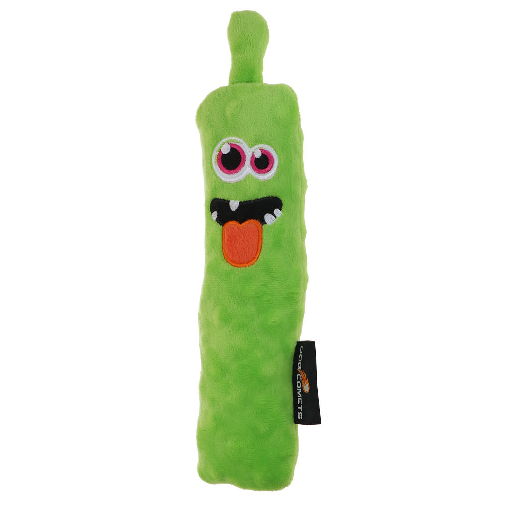 These aliens are taking over the world together with the most loyal of four-legged friends! These cuddly throwing sticks are filled with a sponge filling, making them heavier and denser than standard dog toys. The crackling material inside and the squeaker provide extra stimulation during play and encourage dogs to sink their teeth into the toy. The Invaders are perfect for playing indoors, snuggling and playing tug and fetch games. Each Invader has a unique facial expression and personality.