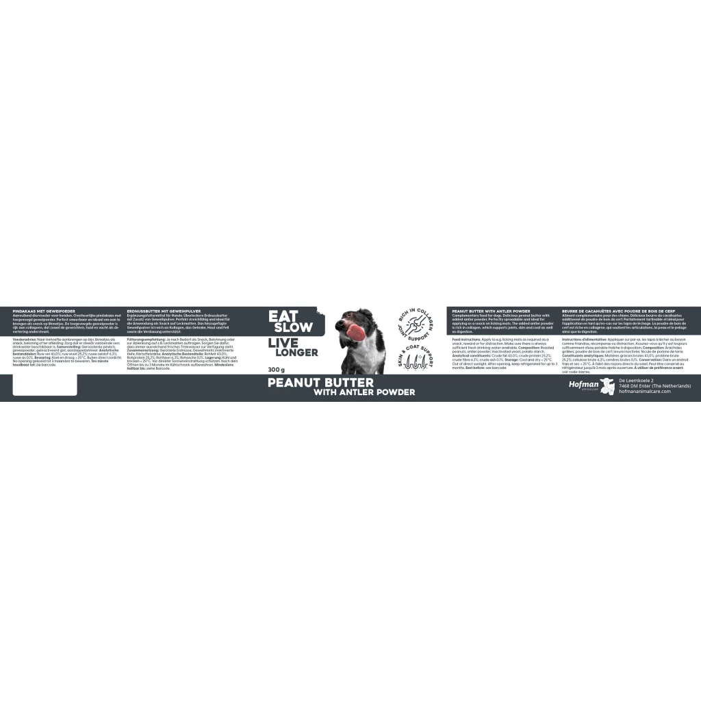 Simply apply a layer of peanut butter to a licking mat and let your dog enjoy the slow licking pleasure. Perfect as a reward or treat, this peanut butter with deer antler powder will undoubtedly become a favorite with your four-legged friend. Give your dog something to really look forward to with Eat Slow Live Longer peanut butter with deer antler powder.
