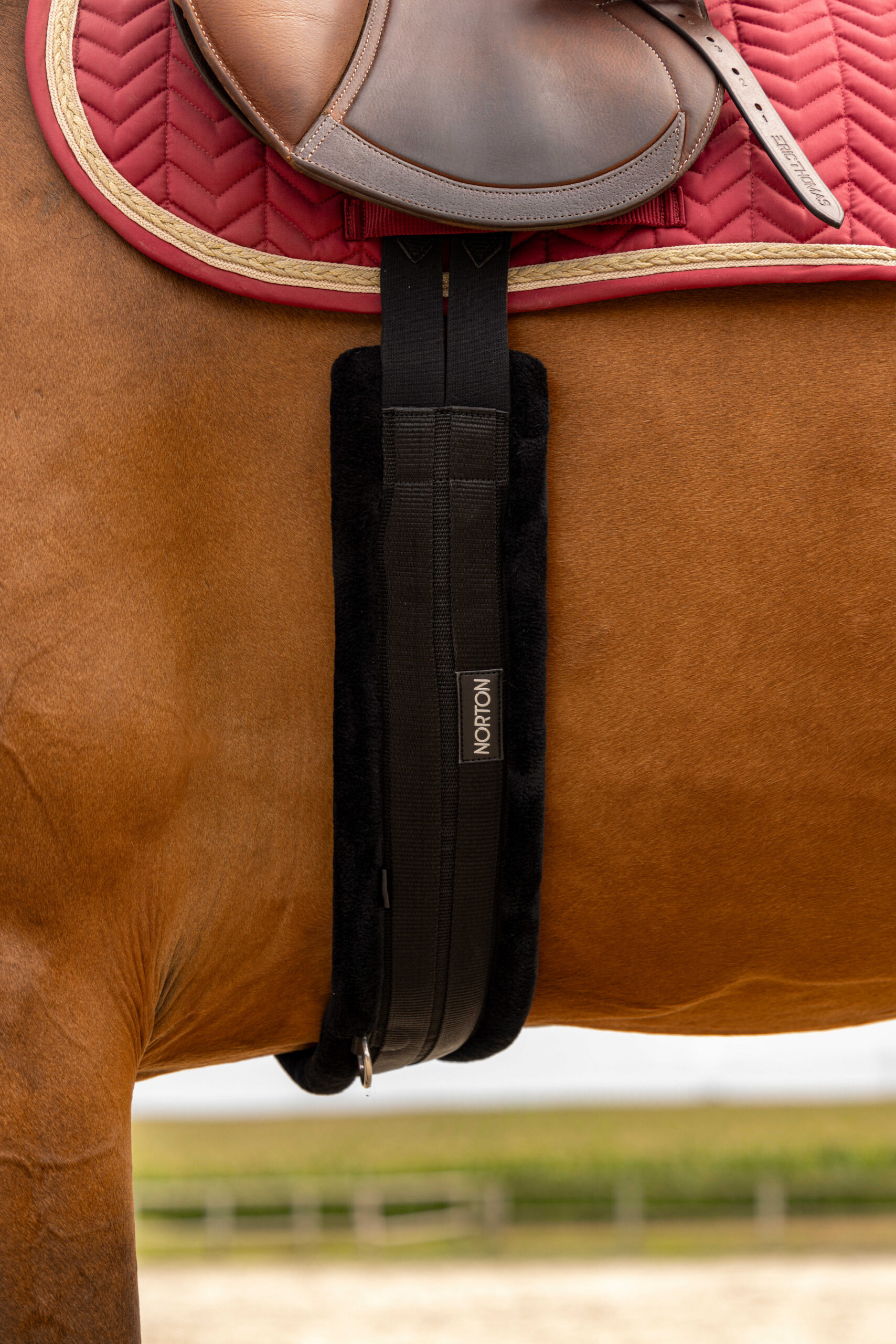 – Practical: Rings for attaching side reins, double elastic strap on the left side.