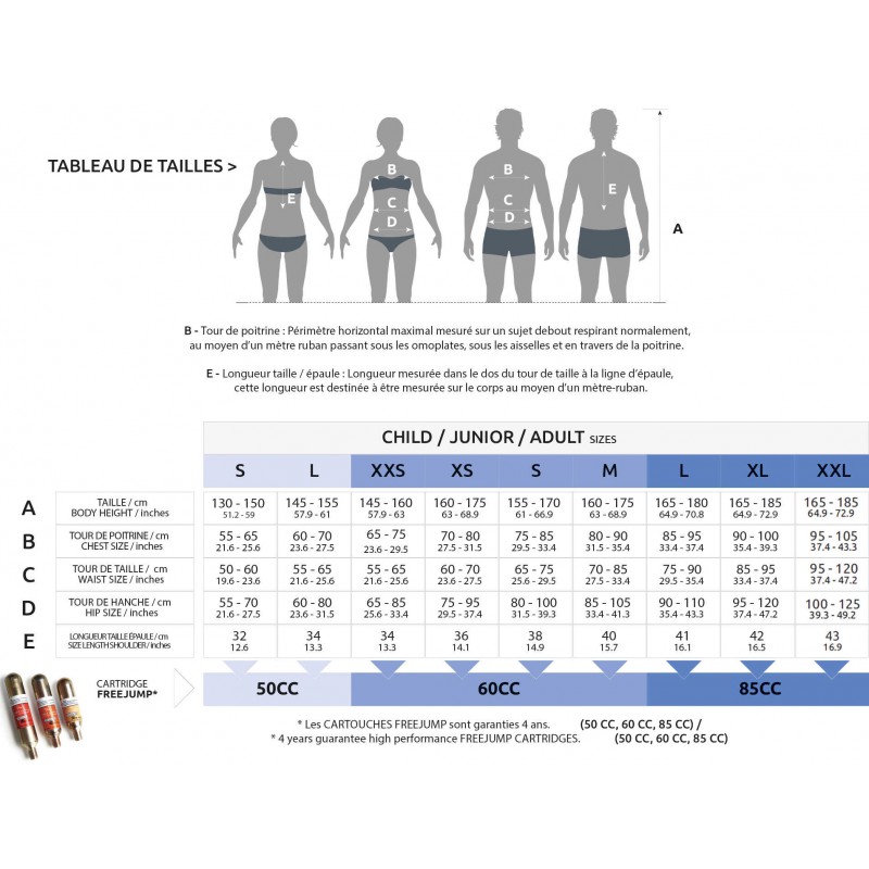 – Comfort and ventilation: Excellent breathability with a total weight of 900 g (for Size M, including cartridge)!