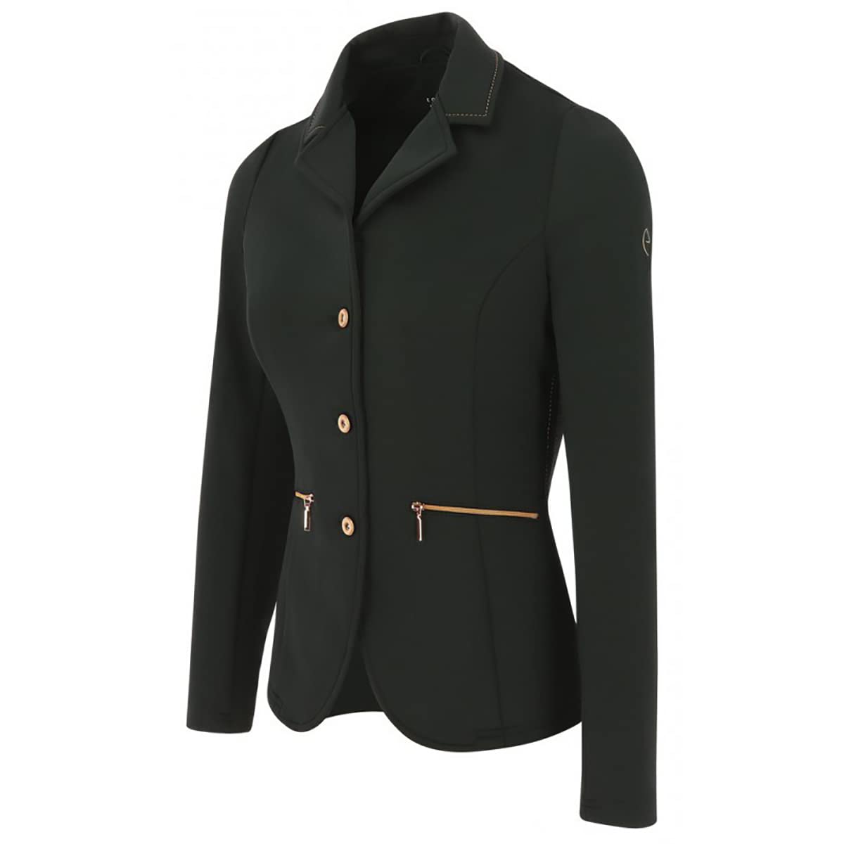 – Hand pockets with rose gold zip closures.