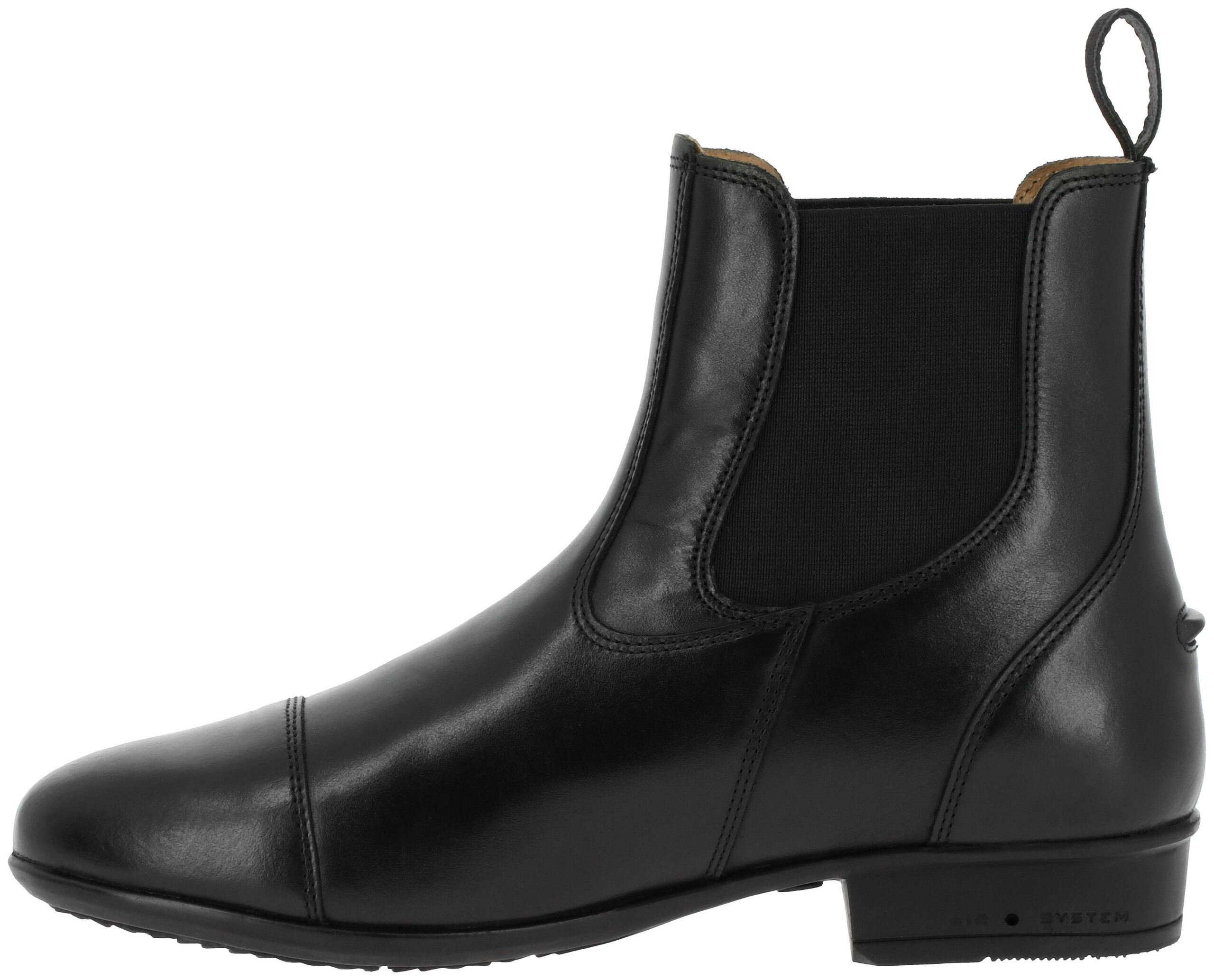 Elegance and comfort optimized for these paddock boots. – Quality leather: Made of supple and durable cowhide leather, with elastic side panels for a perfect fit. – Cushioning and comfort: Air System sole provides excellent support and optimal shock absorption. – Durability and flexibility: Blake-stitched construction ensures long-lasting wear and flexibility. – Practical and functional: Spur rest at the back for better stability. DETAILS: – Refined design suitable for both riding and everyday wear. – Easy to slip on thanks to elastic side panels. – Designed for optimal comfort on foot and in the saddle. COMPOSITION: 100% cowhide leather.